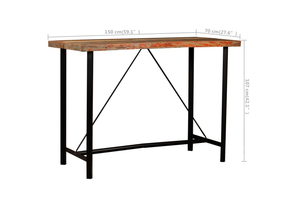Barový stůl je ručně vyrobený z masivního recyklovaného dřeva. Recyklované dřevo má vlastnosti různých druhů dřeva, jako je teak, mangovník, akácie apod. Takové dřevo je již vyzrálé, zvětralé a vyschlé, takže se nesmršťuje ani neohýbá. Bytelné ocelové nohy zajišťují mimořádnou pevnost a odolnost stolu a zároveň podtrhují jeho působivý industriální šarm. Perfektní řemeslné zpracování zaručuje, že byl každý krok výrobního procesu provedený s největší péčí, ať už šlo o leštění nebo lakování.