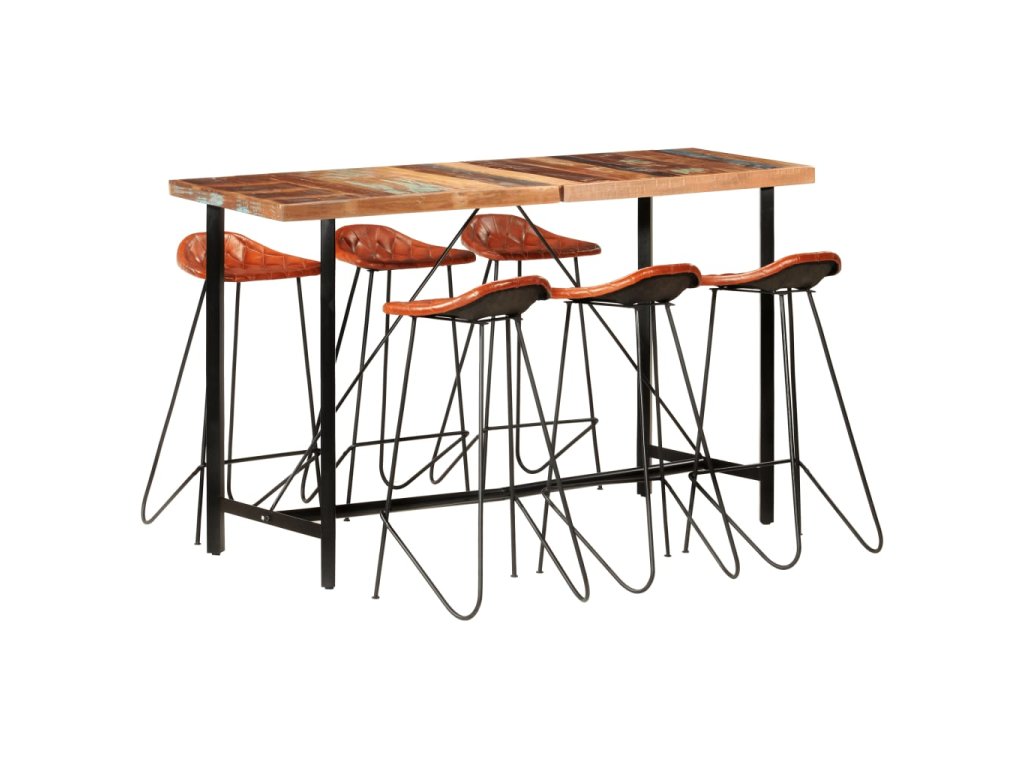 7dílný barový set masivní recyklované dřevo a pravá kůže 278768