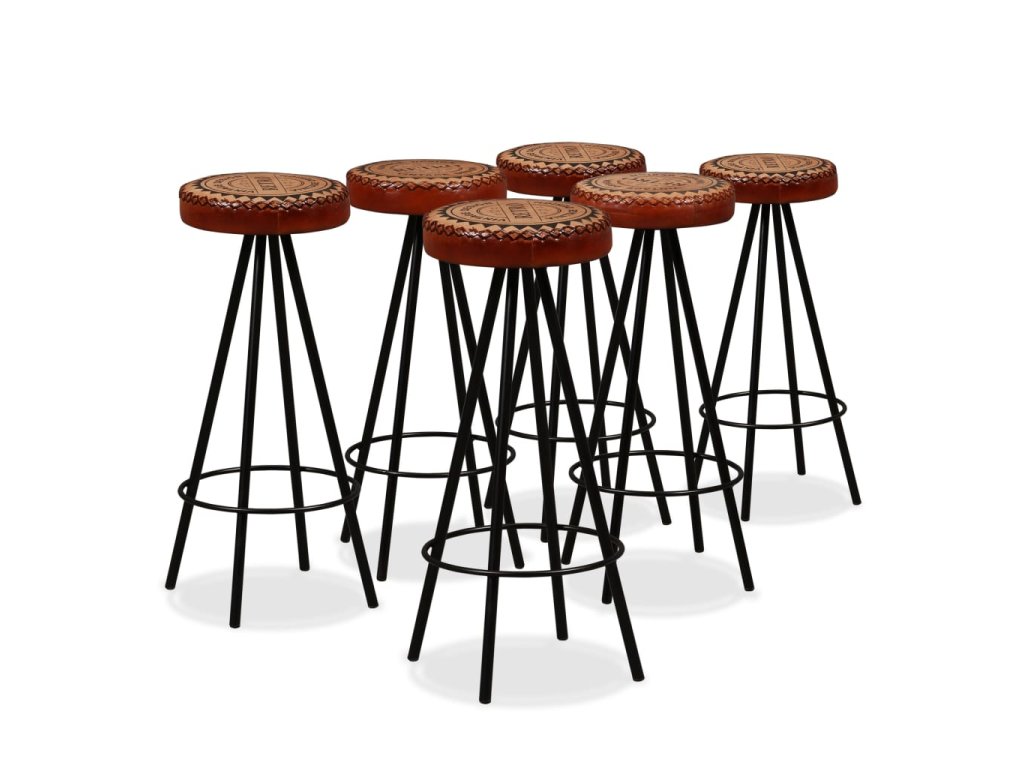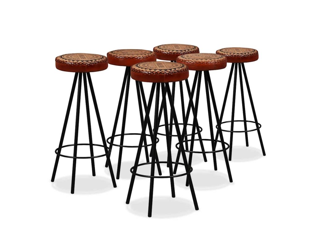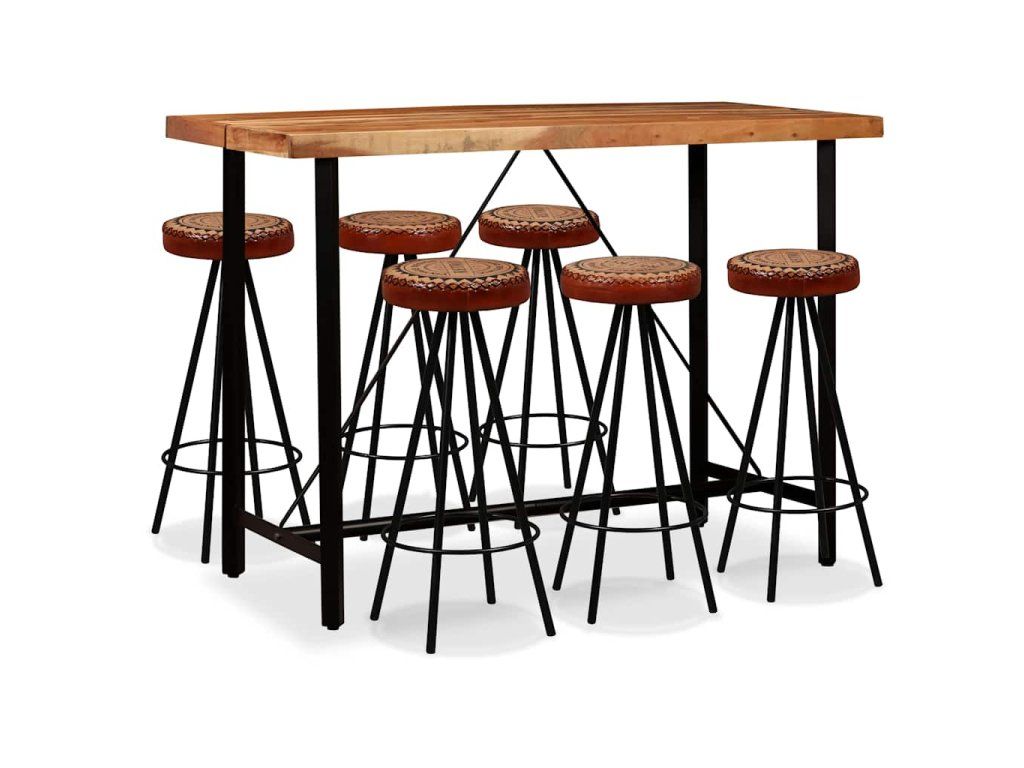Barový set 7 kusů masivní akáciové dřevo, pravá kůže a plátno 275135
