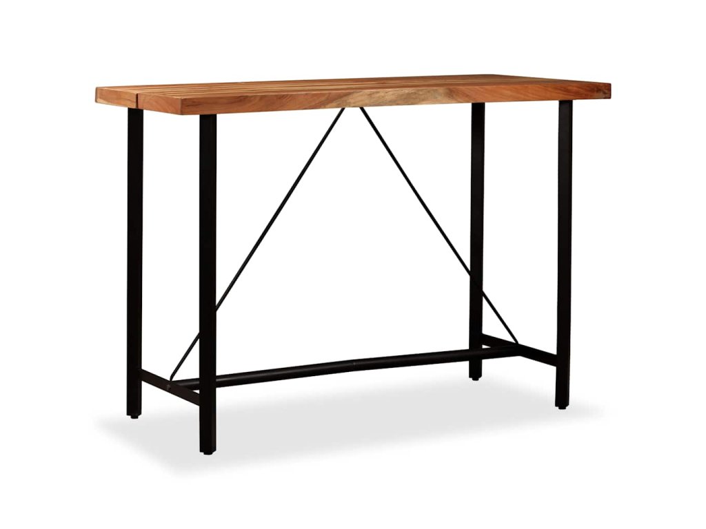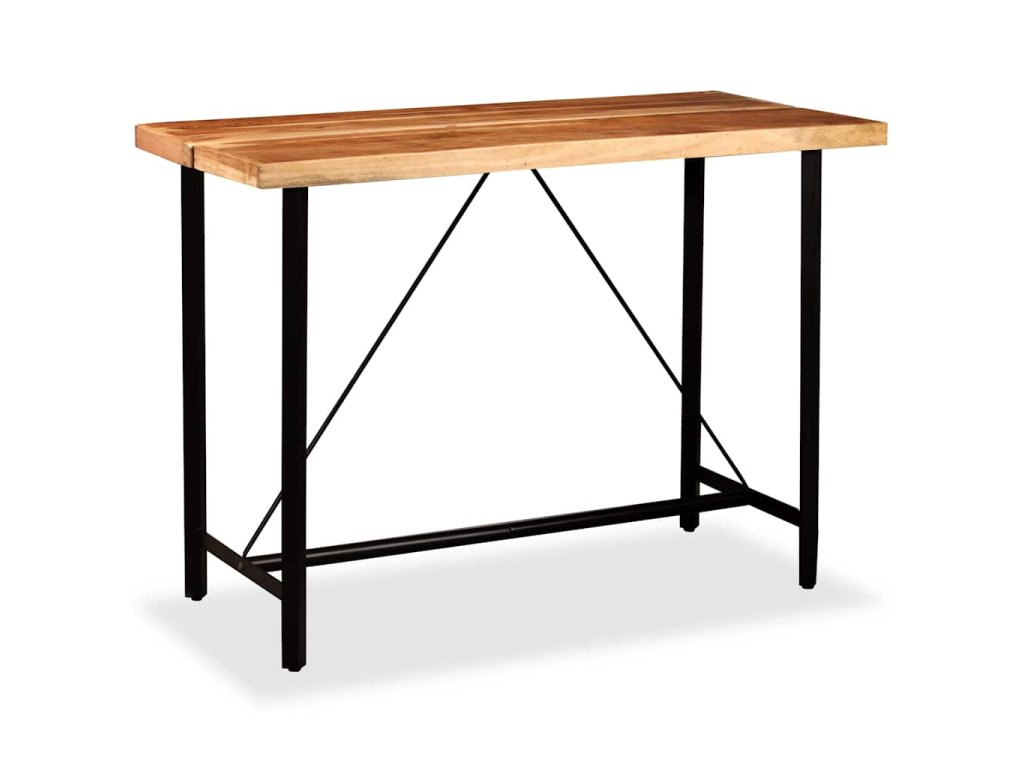 Barový stůl je vyrobený z masivního akáciového dřeva, které je odolné, stabilní a snadno se čistí. Stůl je celý ručně vyrobený a překrásná kresba dřeva dává každému kusu nábytku jeho jedinečný a od ostatních lehce odlišný charakter. Silné ocelové nohy přidávají stolu na stabilitě a odolnosti, a navíc umocňují jeho působivý industriální styl. Důležité upozornění: Kresba a odstín dřeva se mohou lišit kus od kusu, a proto je každý stůl unikátní. Výběr kusu k dodání je náhodný.
