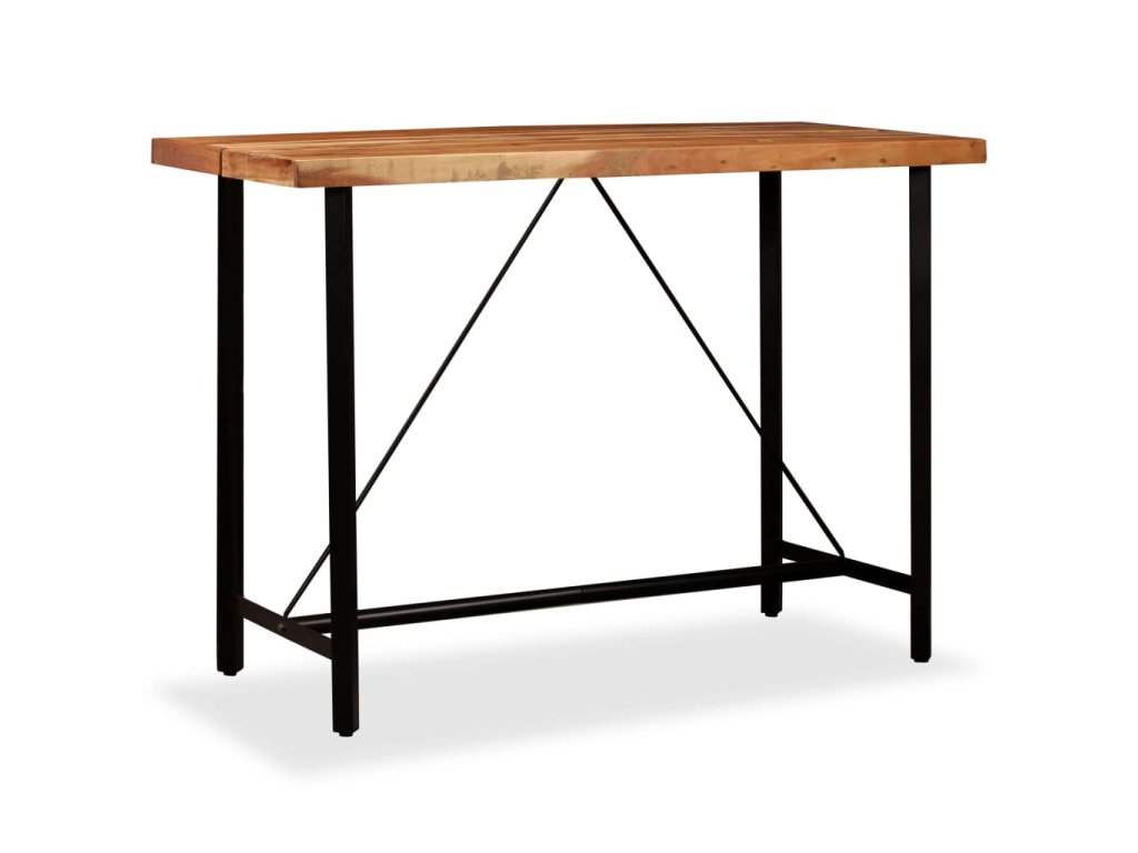 Barový stůl je vyrobený z masivního akáciového dřeva, které je odolné, stabilní a snadno se čistí. Stůl je celý ručně vyrobený a překrásná kresba dřeva dává každému kusu nábytku jeho jedinečný a od ostatních lehce odlišný charakter. Silné ocelové nohy přidávají stolu na stabilitě a odolnosti, a navíc umocňují jeho působivý industriální styl. Důležité upozornění: Kresba a odstín dřeva se mohou lišit kus od kusu, a proto je každý stůl unikátní. Výběr kusu k dodání je náhodný.