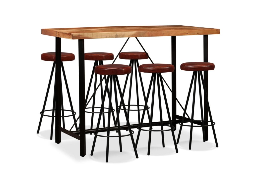Barový set 7 kusů masivní akáciové dřevo a pravá kůže 275133