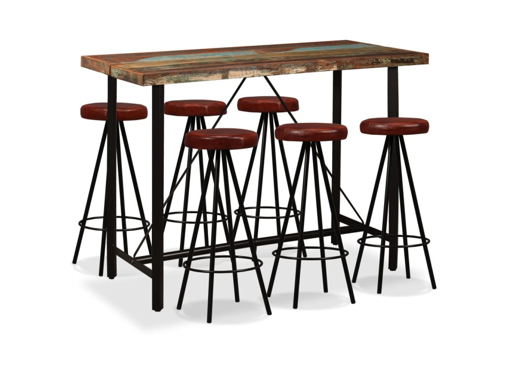 Barový set 7 kusů masivní recyklované dřevo a pravá kůže 275145