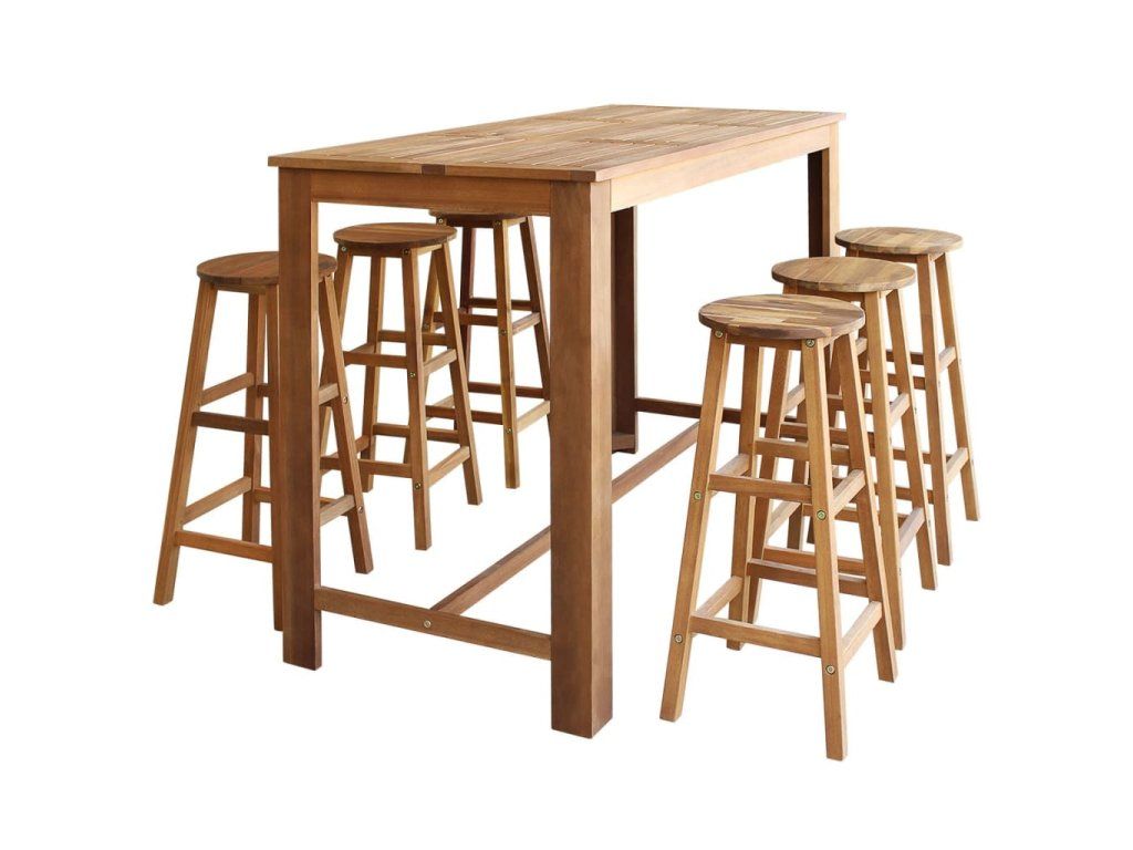 Barový stůl a stoličky sada 7 ks masivní akáciové dřevo 246670