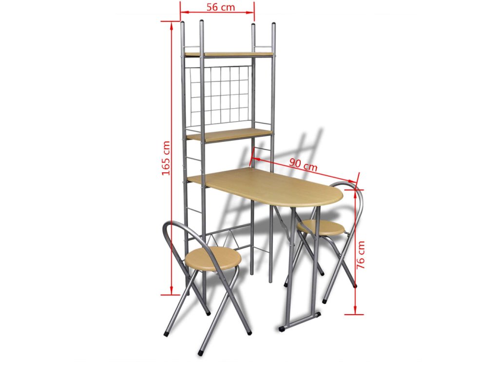 - Rozměry stolu (v rozložené poloze): 56 x 90 x 165 cm (D x Š x V)