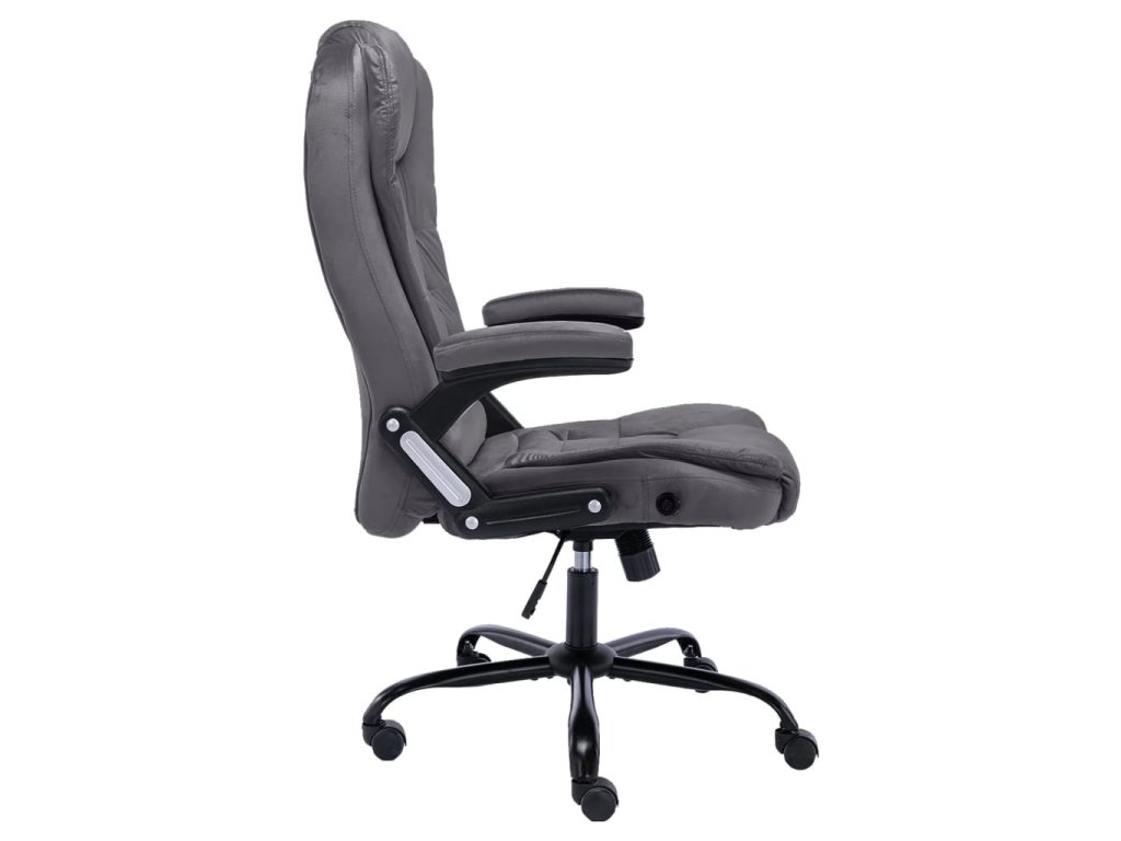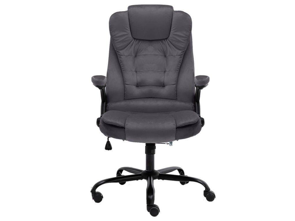 Židle má vysoké opěradlo, zaoblené područky a hustě polstrovaný sedák, aby se vám na ní dobře sedělo i během dlouhých pracovních dnů. Její výšku lze nastavit, takže ji bez problémů přizpůsobíte výšce psacího stolu, a dosáhnete tak maximálního pohodlí i zdravé pozice páteře. Polohovací křeslo je vybavené nylonovými pojezdovými kolečky pro snadný pohyb.