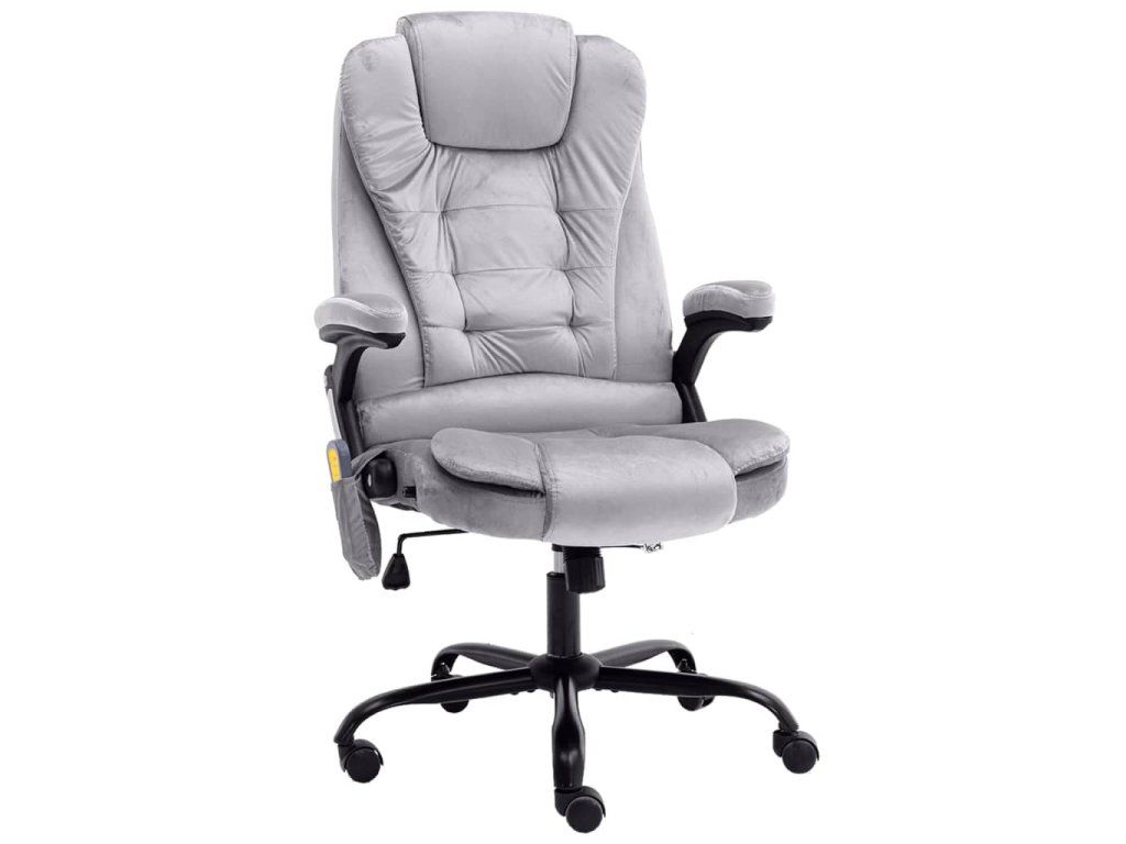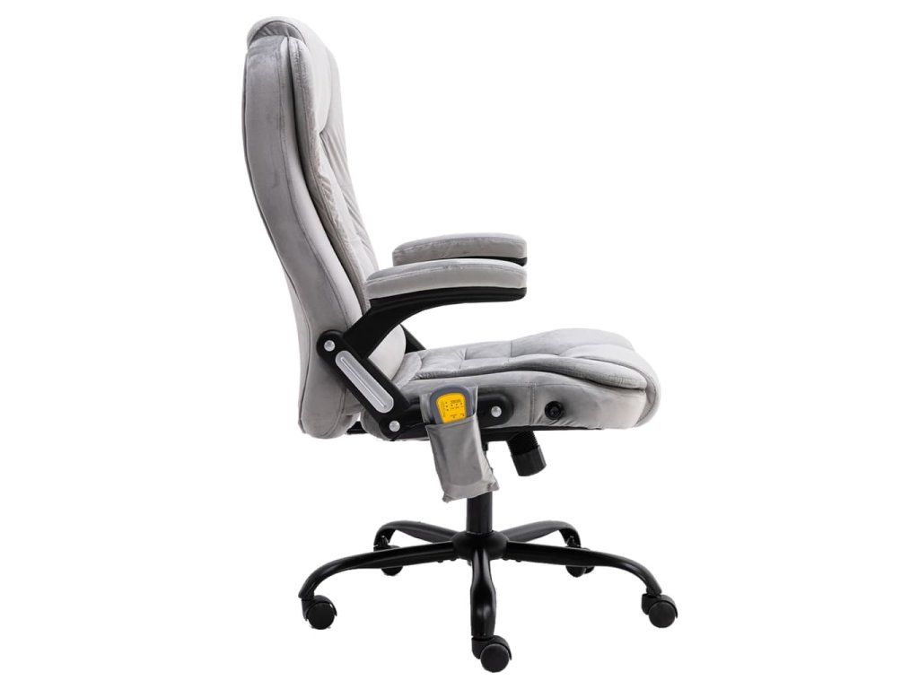 Má vysoký design opěradla, zakřivenou loketní opěrku a silně polstrovaný sedák, což nabízí pohodlí i při dlouhých pracovních sezeních. Výškově nastavitelný design umožňuje přizpůsobit se výšce stolu a dosáhnout tak většího pohodlí. Tato polohovací židle je vybavena nylonovými kolečky, takže ji můžete snadno přemisťovat. Židle má 4 masážní body pro záda a 2 masážní body pro sedák. Má také funkci vyhřívání pasu.