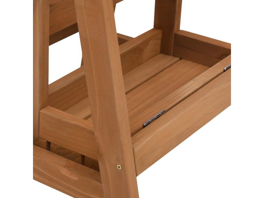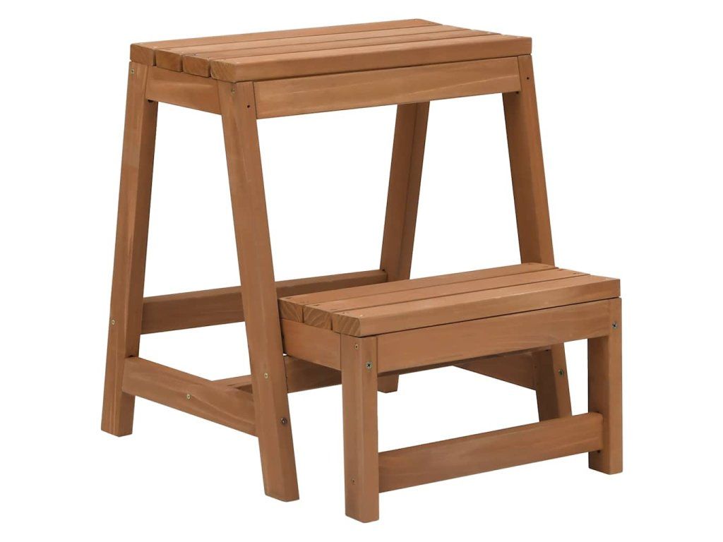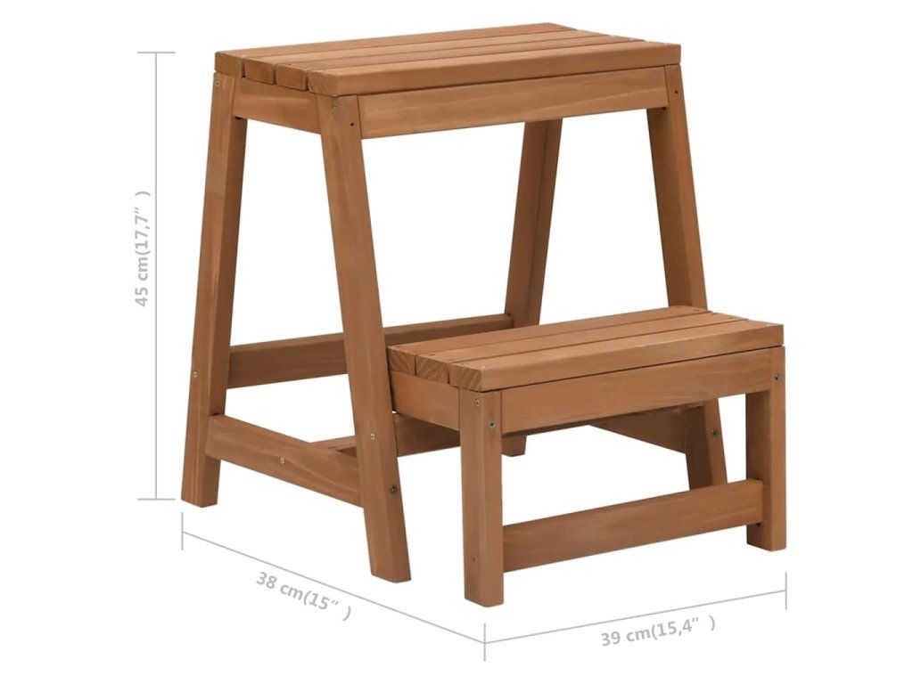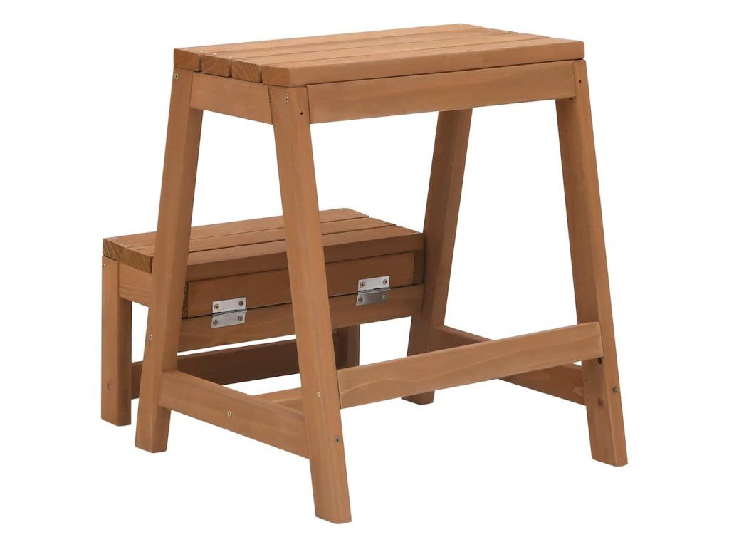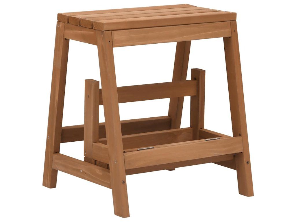 Skládací stolička je vyrobena z masivní jedle, proto je stabilní a odolná. Se skrytým složitelným schůdkem může sloužit různým účelům jako sedák pro spontánní návštěvy, schůdky pro dosažení vysokých poliček a skříněk nebo jako malý úložný nábytek v obývacím pokoji nebo ložnici. Dřevěná složitelná stolička se navíc snadno skladuje, když není používána.