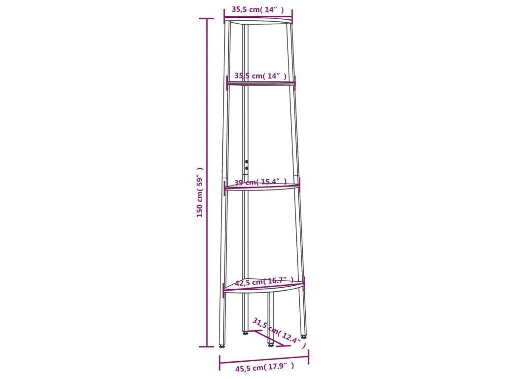 4patrová rohová police tmavě hnědá a černá 45,5 x 31,5 x 150 cm 336392