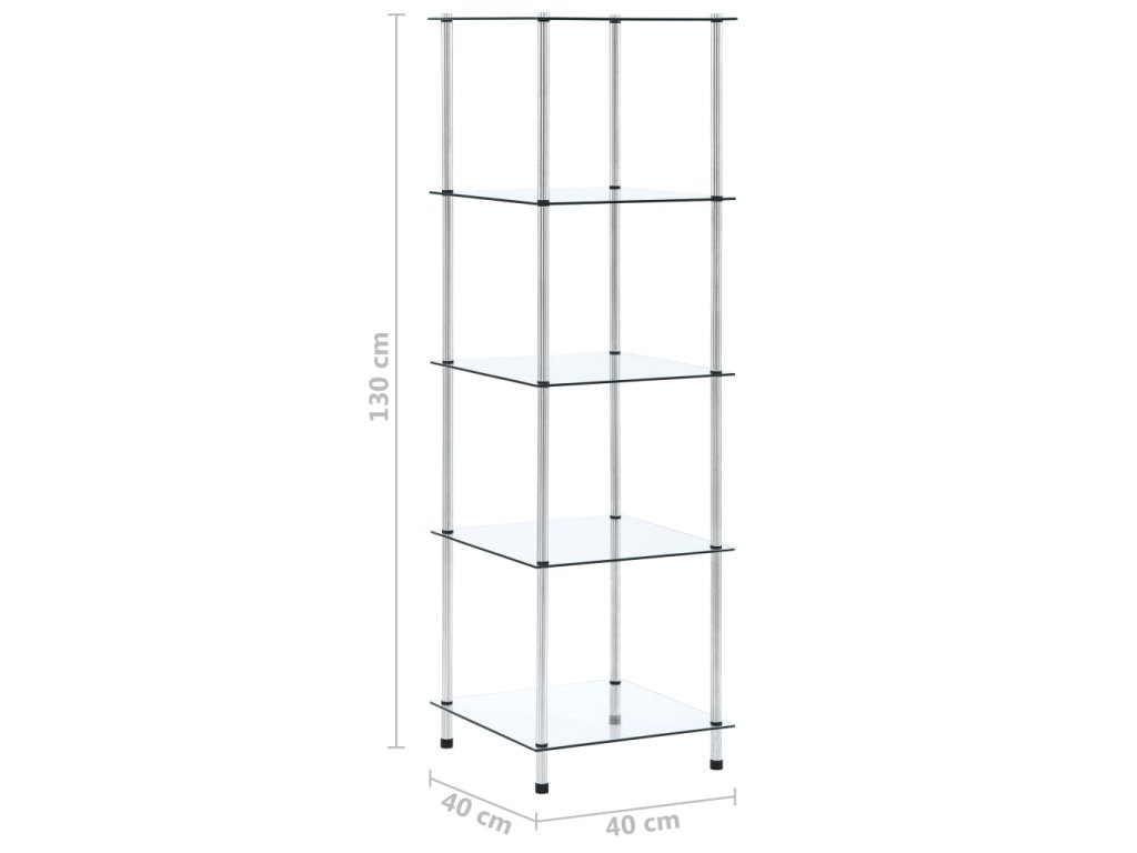 5patrová police průhledná 40 × 40 × 130 cm tvrzené sklo 249506