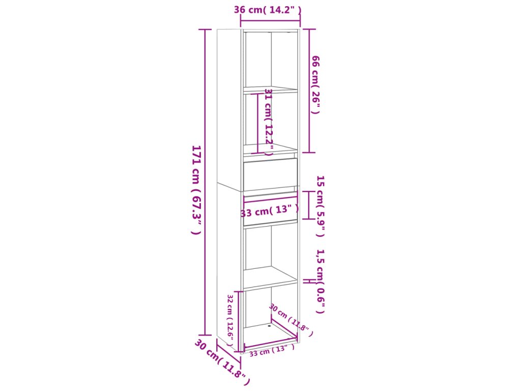 - Rozměry: 36 x 30 x 171 cm (Š x H x V)
