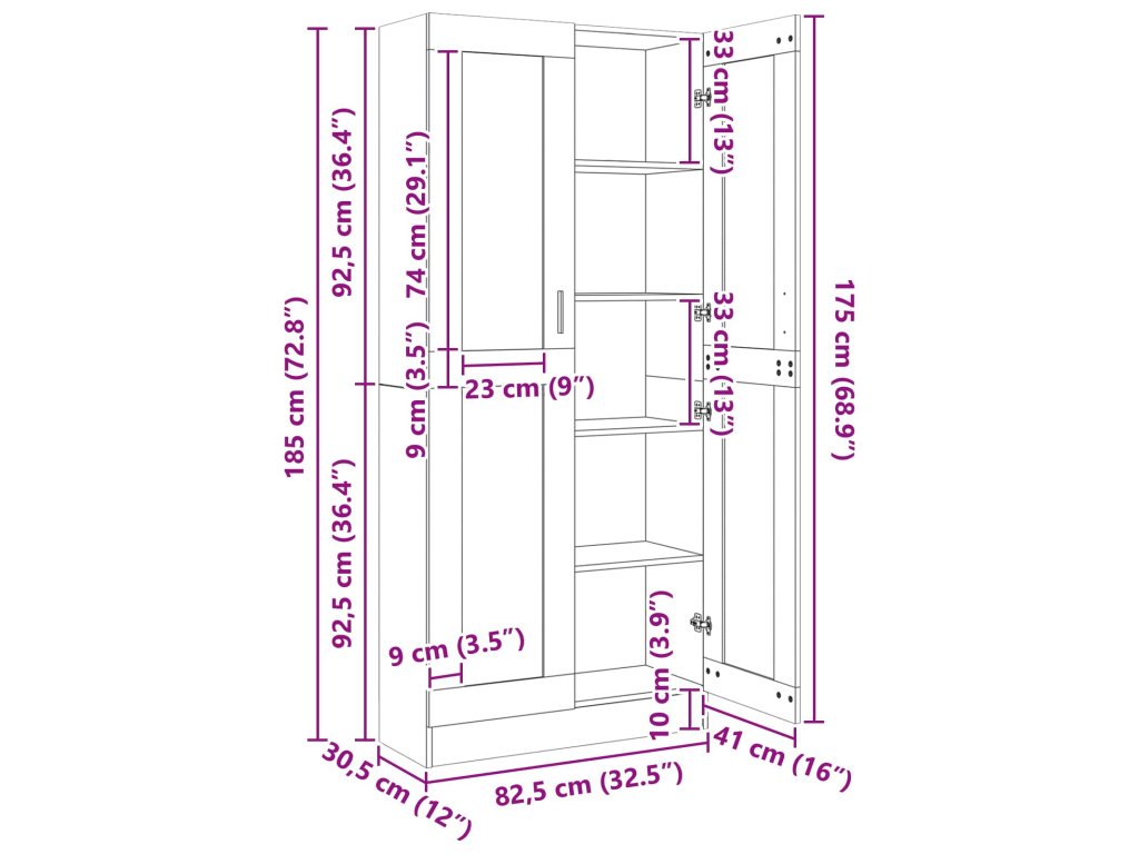 - Celkové rozměry: 82,5 x 30,5 x 185 cm (D x Š x V)