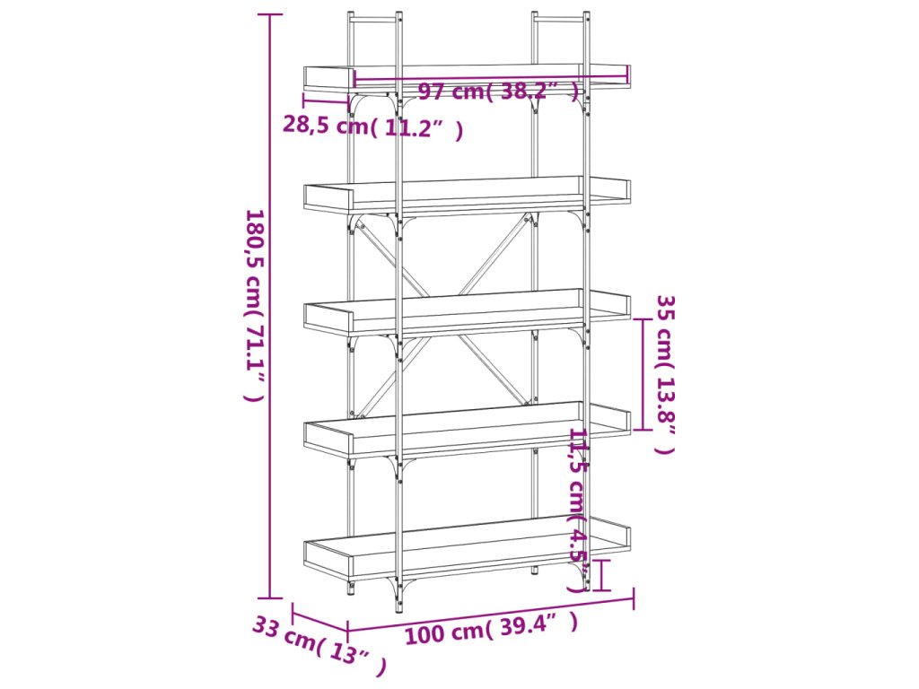 Knihovna s 5 policemi hnědý dub 100 x 33 x 180,5 cm kompozit 837701