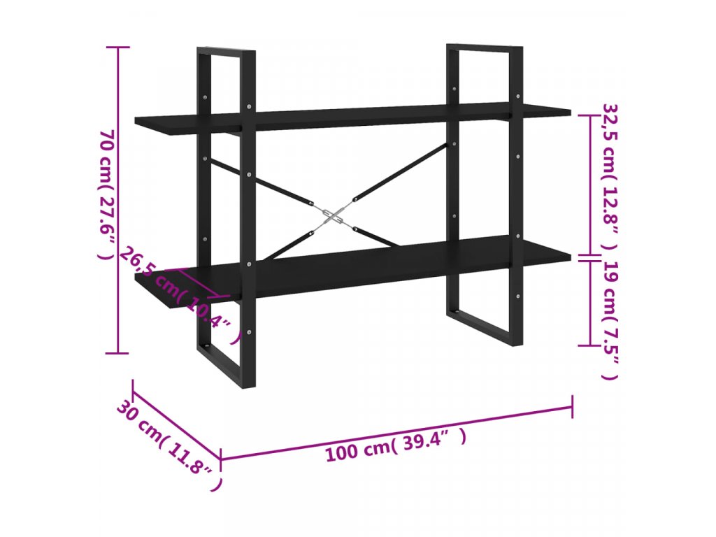 Knihovna se 2 policemi černá 100 x 30 x 70 cm kompozitní dřevo 806468