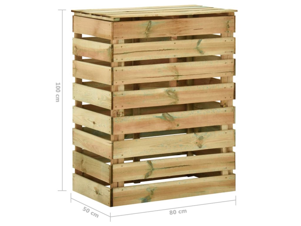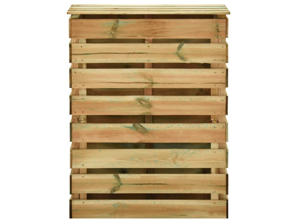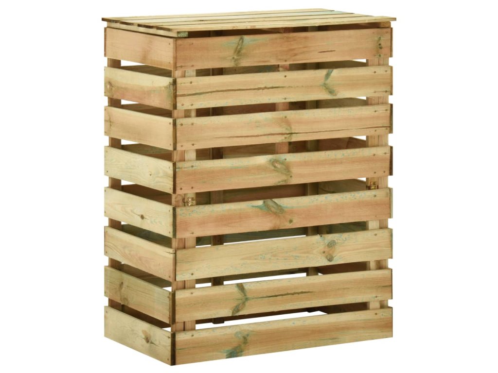 Tento zahradní kompostér má lamelovou konstrukci, která zajišťuje dobrou cirkulaci vzduchu při kompostování a přeměňuje organický odpad na užitečný kompost bohatý na živiny. Je vyrobený z impregnovaného borového dřeva, které je robustní, klimaticky odolné a výborně vzdoruje hnilobě, takže je vhodné pro každodenní venkovní použití. Kompostovací koš s otvíracím víkem poskytuje vynikající řešení pro recyklování vašeho zahradního odpadu.