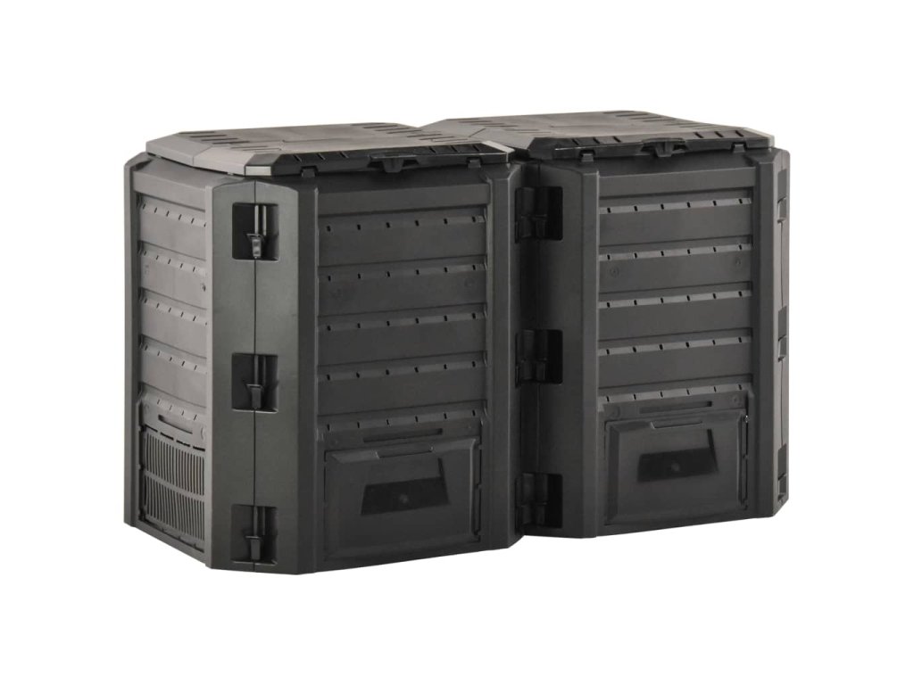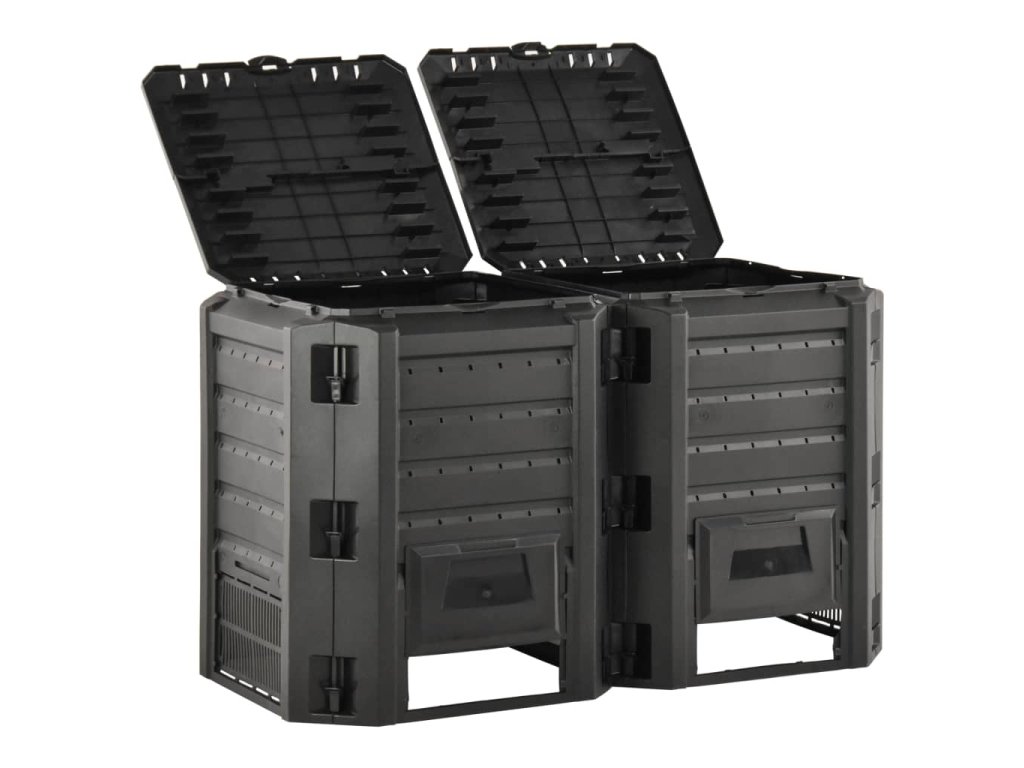 Vysoká teplota, která vzniká uvnitř kompostéru, podporuje rychlejší bakteriální rozklad a vytváří kvalitnější humus. Kontejner má kompaktní design, takže nezabírá příliš místa, ale zároveň nabízí mohutný vnitřní objem. Horní víko umožňuje snadné plnění shora, zatímco vyklápěcí dvířka ve spodní části naopak zajišťují jednoduché vytahování humusu. K sestavení kompostu nepotřebujete žádné další nástroje.