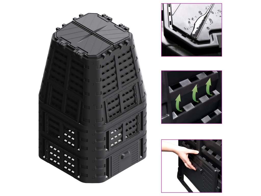 Zahradní kompostér černý 93,3 x 93,3 x 146 cm 1000 l 146278