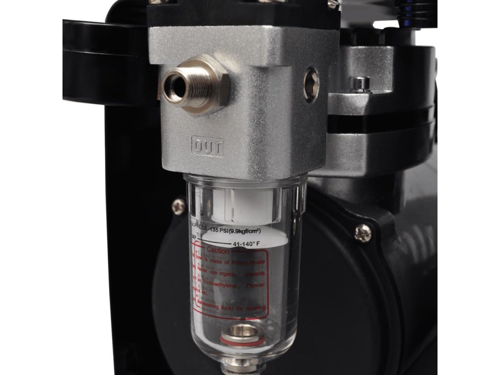 Tento mini reciproční kompresní pouzdro s regulací vzduchu, vzduchovým filtrem a manometrem je vhodný pro všechny typy airbrush s tryskou o velikosti 0,2 až 1,0 mm.
