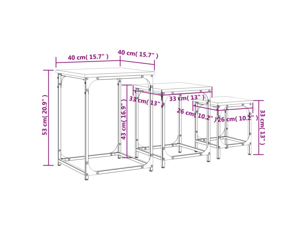 Tyto tři konferenční stolky jsou chytrým řešením pro malé obytné prostory nebo jakýkoli omezený prostor. Tato sada konferenčních stolků s industriálním designem dodá vašemu obývacímu pokoji, ložnici nebo kanceláři elegantní nádech.