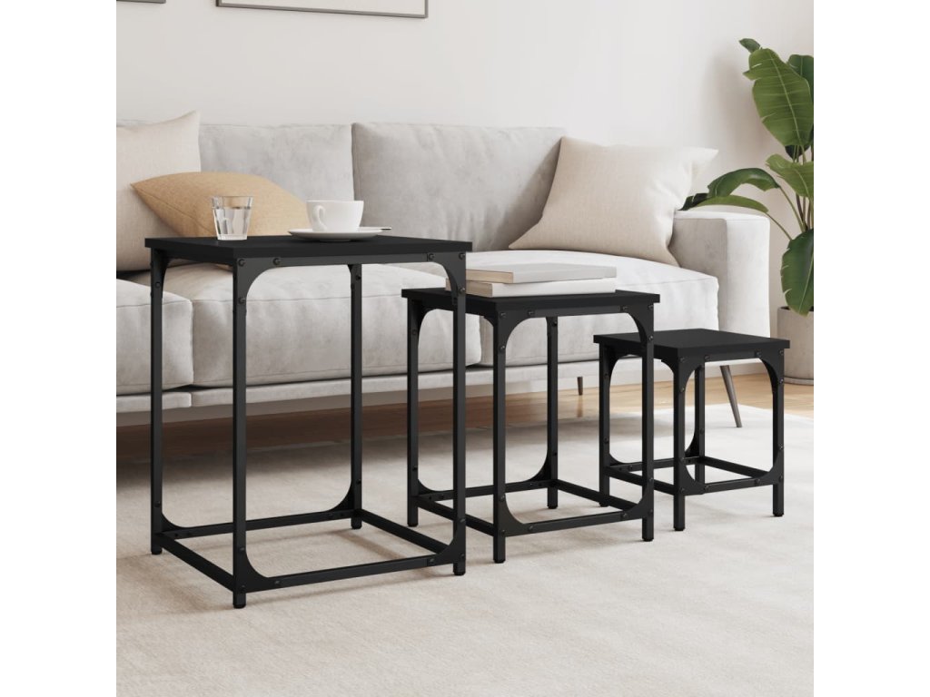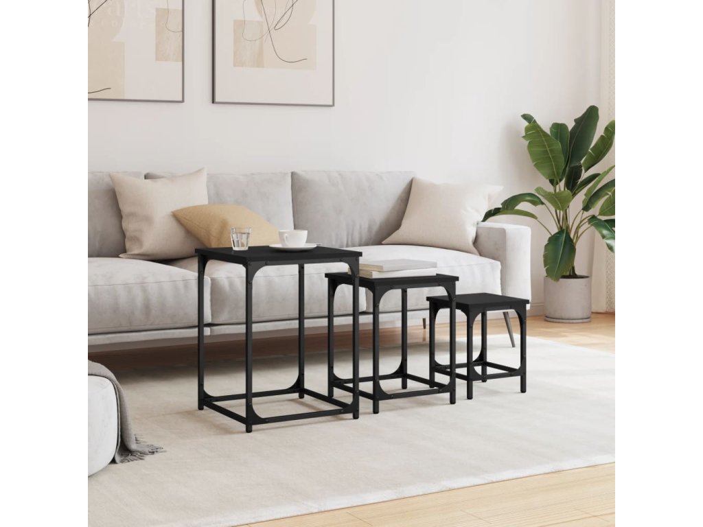 Hnízdové konferenční stolky 3 ks černé kompozitní dřevo 838923