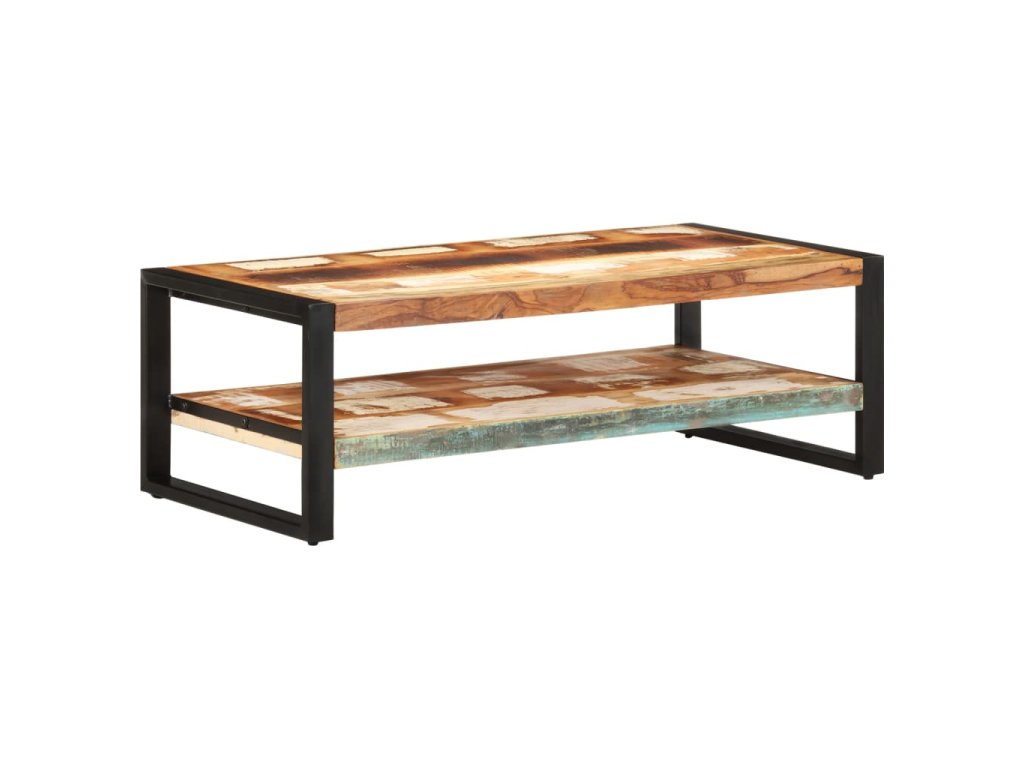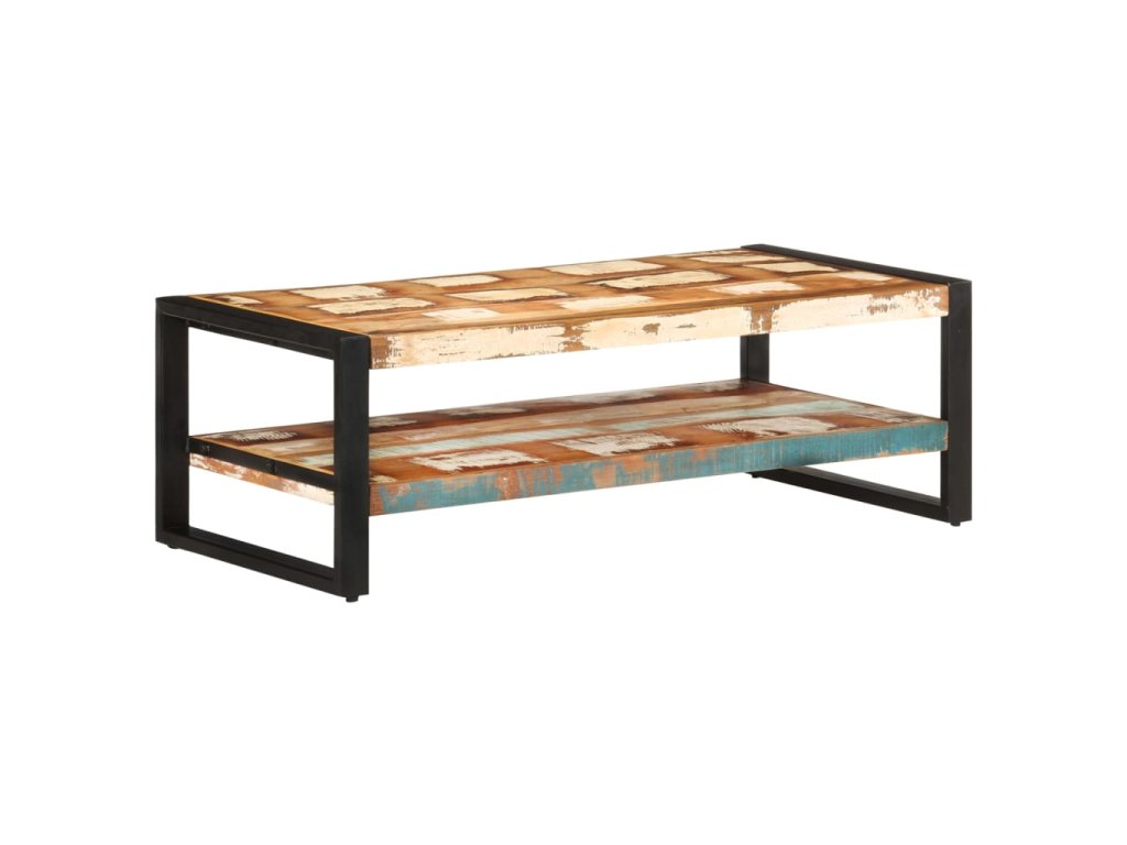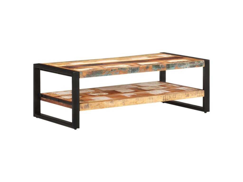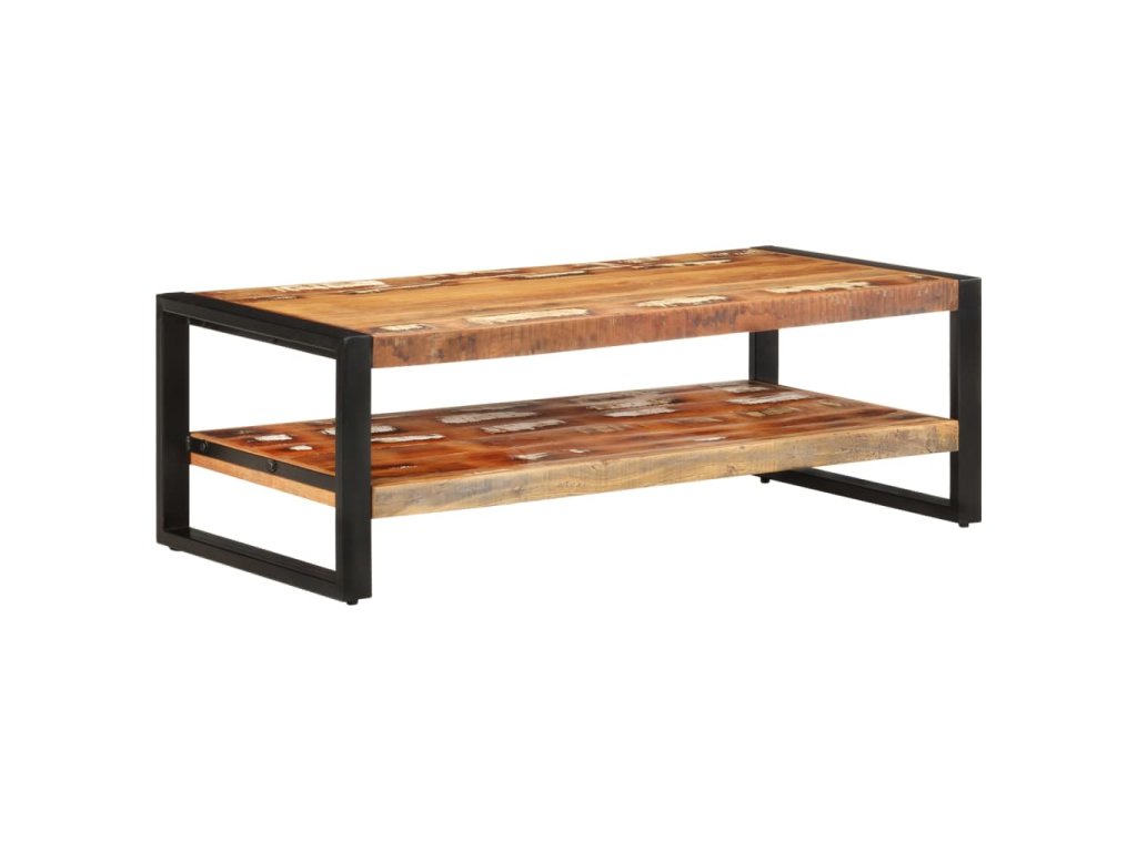 Tento konferenční stolek je vyroben z masivního recyklovaného dřeva, které pochází z trámů, nosných trámů a podlah ze starých a zbouraných budov. Jedná se tedy o ekologicky šetrný způsob výroby nábytku. Jde se o směs regenerovaného dřeva, které zahrnuje borovici, teak, buk, mangovník atd. To znamená, že regenerovaný materiál si zachovává vlastnosti těchto různých druhů dřeva. Železný rám s práškovým nástřikem dodává nábytku větší stabilitu. Tento praktický akcentový stolek má 2 vrstvy, které poskytují dostatek prostoru pro umístění multimediálních přístrojů, knih, časopisů nebo drobných předmětů, které chcete mít na dosah. Můžete si na něj také odložit nápoje, vystavit vázy, mísy s ovocem a další ozdoby.