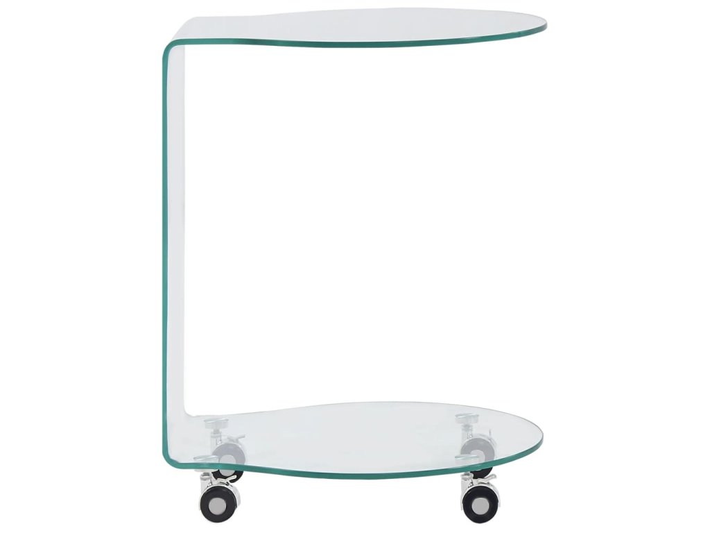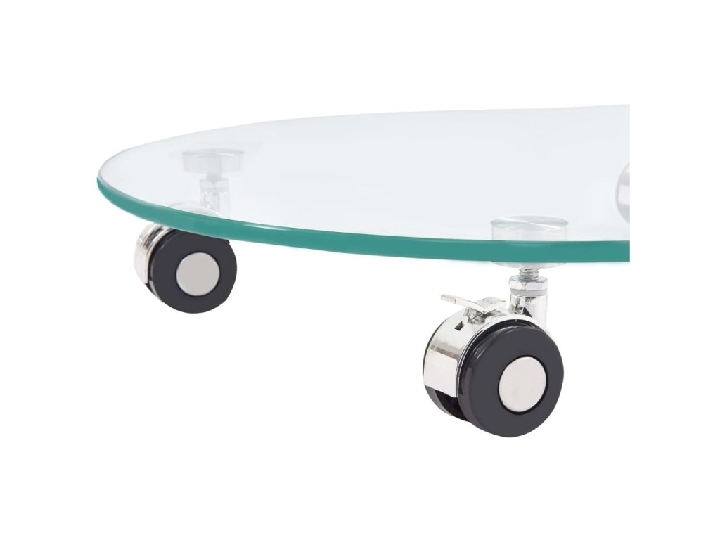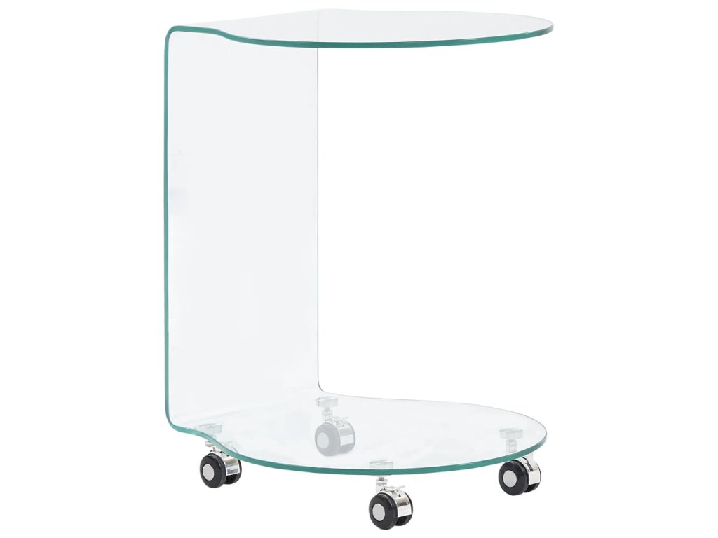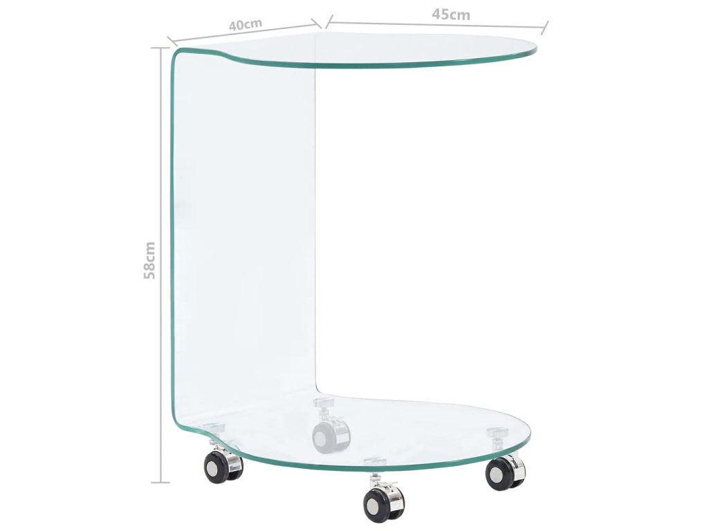Stolek k pohovce je vyrobený z tvrzeného bezpečnostního skla, které je ve srovnání s běžným sklem mnohem silnější a bezpečnější. Skleněný stolek je tudíž mimořádně odolný a hodně toho vydrží. Čtyři kolečka umožňují snadné přesouvání z místa na místo. K čištění stolku vám postačí navlhčený hadřík.