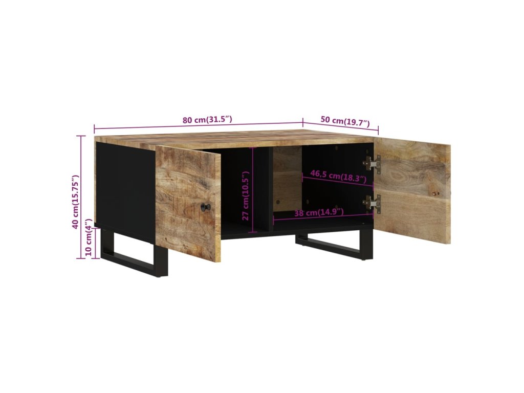 Konferenční stolek 80 x 50 x 40 cm masivní mangovník a kompozit 350636