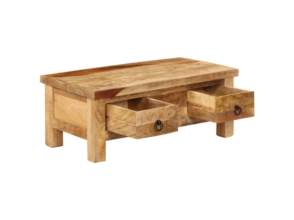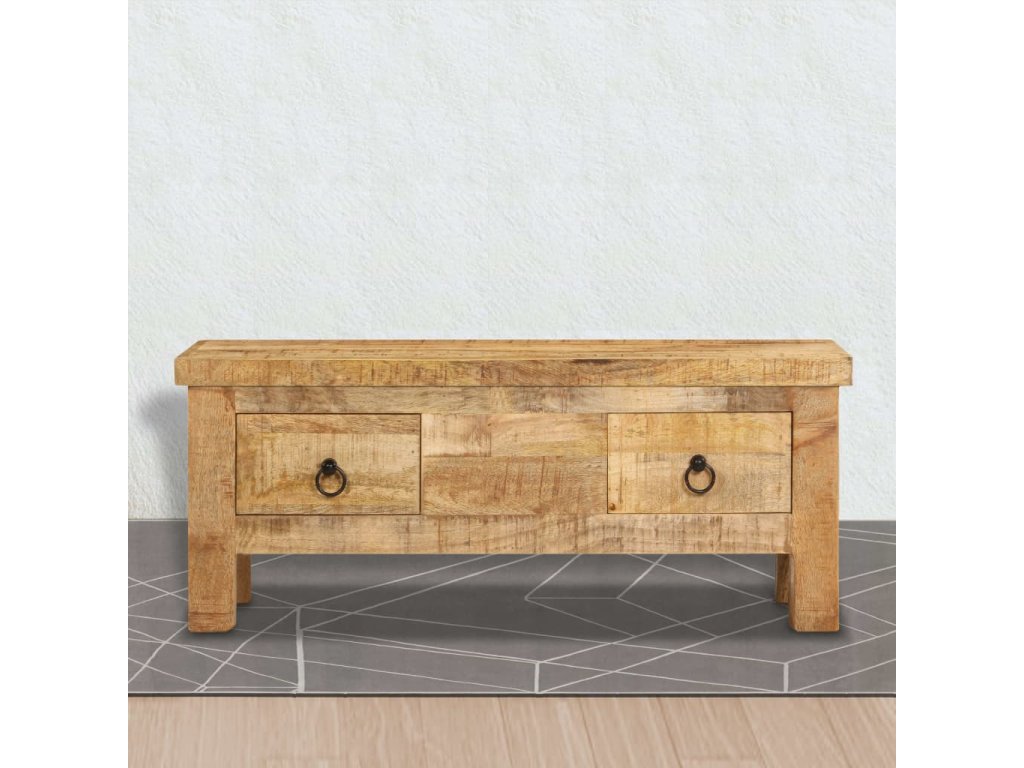 Odkládací stolek s působivým designem je vyrobený z masivního mangovníkového dřeva, je tudíž vysoce stabilní a odolný. Je celý ručně vyrobený, přičemž každé fázi výrobního procesu byla věnována mimořádná péče, ať už šlo o leštění, natírání anebo lakování. Stolek do obýváku disponuje 2 praktickými zásuvkami, které vám poskytnou spoustu místa, kam si můžete uložit svá multimediální zařízení, knížky a další věci.