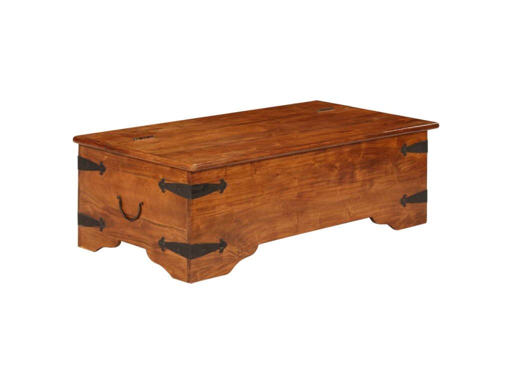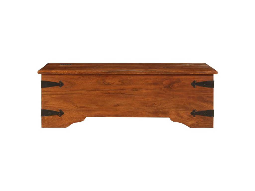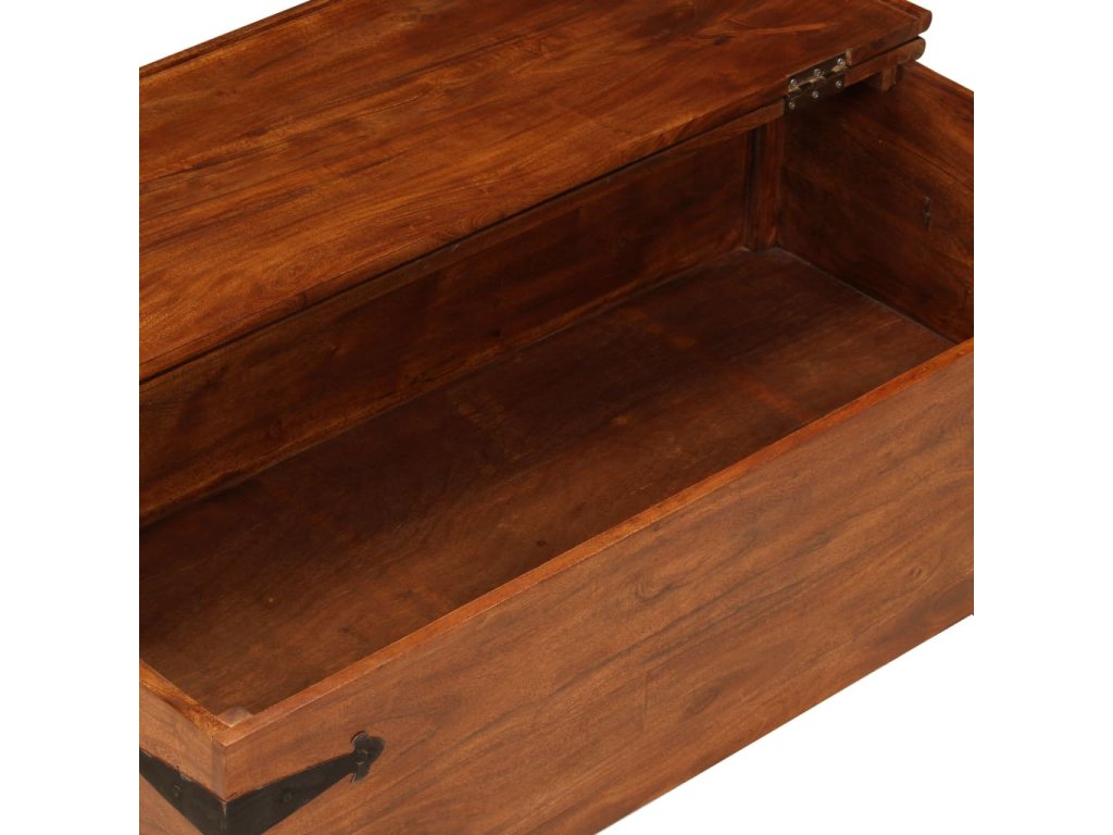 Stolek je zhotovený z masivního akáciového dřeva s medovou povrchovou úpravou a je mimořádně odolný a stabilní. Akáciové dřevo je tvrdé dřevo s krásnou strukturou, které vydrží mnoho let. Podobné akáciovému dřevu, známé jako růžové dřevo nebo palisandr, se vyznačuje svou bohatou strukturou. Horní část má jedny dvířka, která lze odklopit pro snadné uschování vašich věcí. Dřevěná struktura podtrhuje vintage vzhled tohoto konferenčního stolku. Každá fáze výrobního procesu se provádí s největší péčí, ať už se jedná o leštění, natírání nebo lakování. Sestavení je snadné.