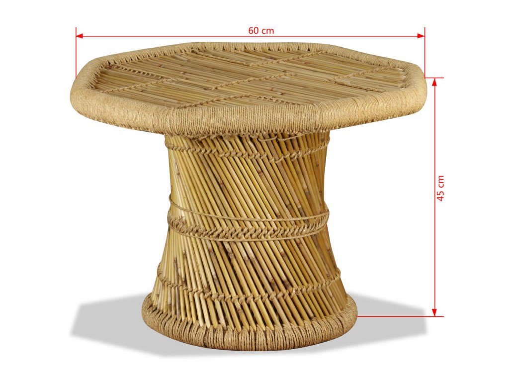 Tento konferenční stolek je ručně vyrobený z přírodního bambusu a juty, takže je robustní a odolný. Na jeho osmihrannou desku si můžete v klidu odložit knihy, notebooky, květináče atd. Navíc se také snadno čistí.