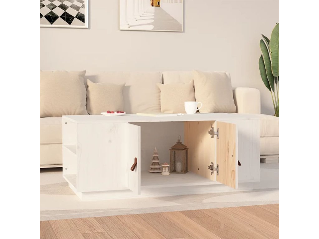 Konferenční stolek bílý 100 x 50 x 41 cm masivní borové dřevo 818256
