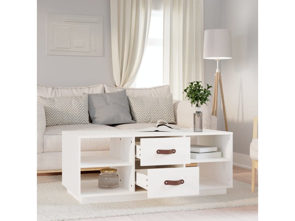 Konferenční stolek bílý 100 x 50 x 41 cm masivní borové dřevo 818271