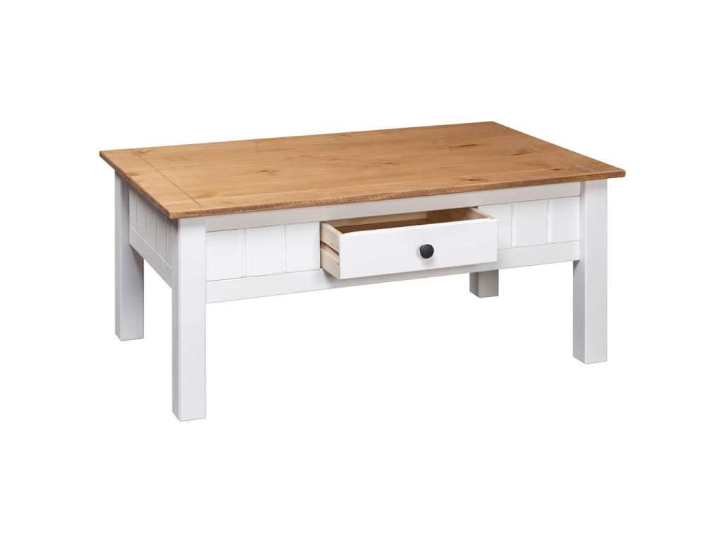 Stolek ke gauči je zhotovený z masivního borového dřeva, je výjimečně robustní a má dlouhou životnost. Konferenční stolek má zásuvku, ve které můžete přechovávat vaše časopisy, knihy, dálkové ovládání a další malé předměty na dosah ruky.