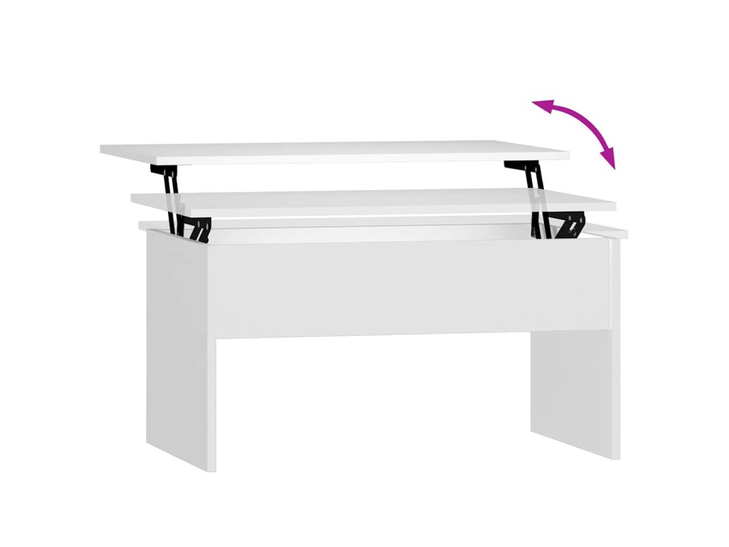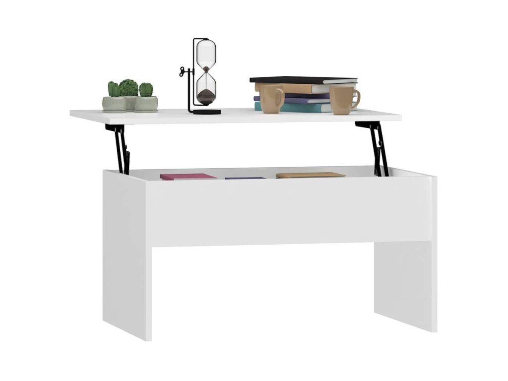 - Design se zvedací deskou: Stolní deska tohoto stolku k pohovce se dá hladce zvednout do pohodlné výšky, a tím jej přeměnit na místo, kde můžete pracovat nebo stolovat.