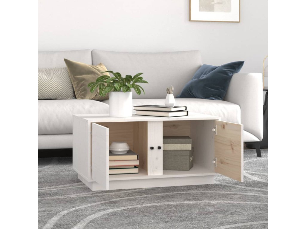Konferenční stolek bílý 80 x 50 x 40 cm masivní borové dřevo 814420