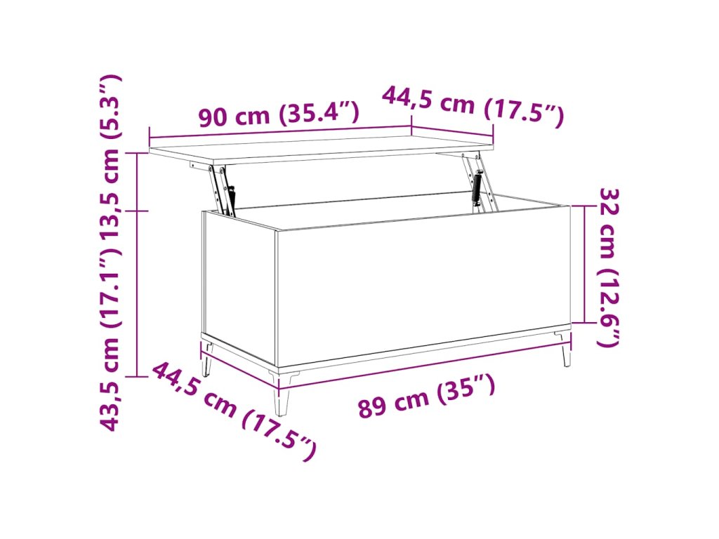 - Design se zvedací deskou: Stolní deska tohoto stolku k pohovce se dá hladce zvednout do pohodlné výšky, a tím jej přeměnit na místo, kde můžete pracovat nebo stolovat.