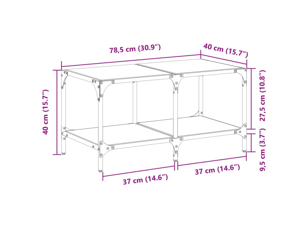 Konferenční stolek černá skleněná deska 78,5 x 40 x 40 cm ocel 845977