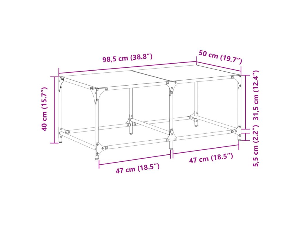 - Robustní a stabilní rám: Stolek do obývacího pokoje má rám z nerezové oceli, což mu zajišťuje mimořádnou pevnost a stabilitu.