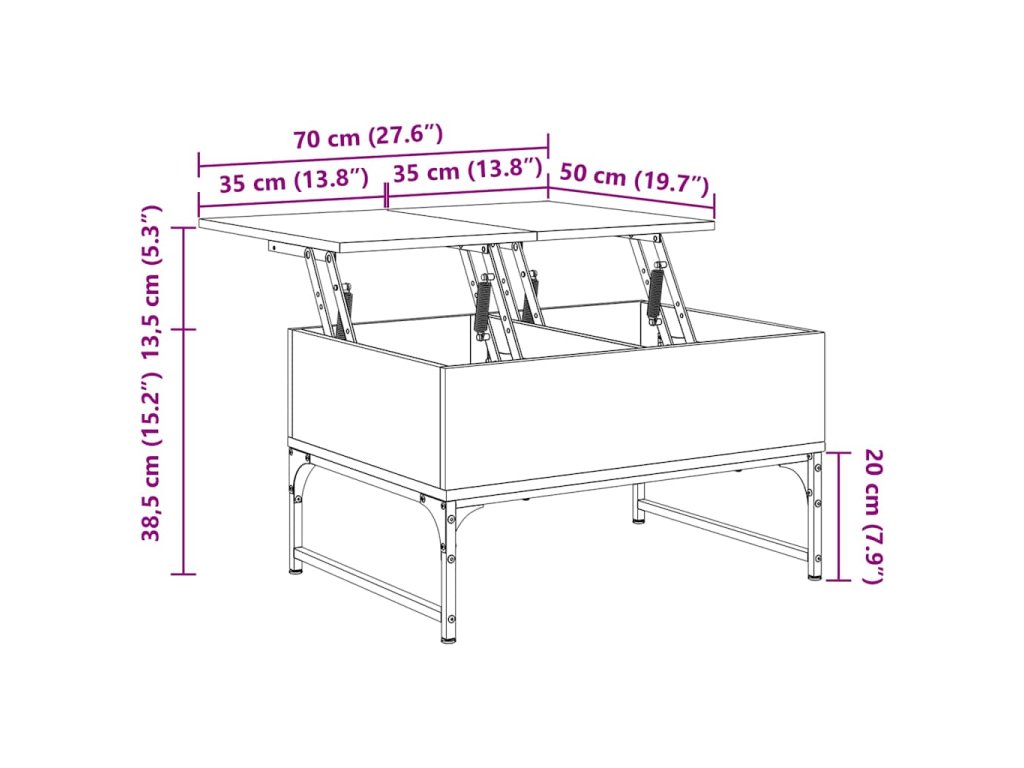 - Design se zvedací deskou: Stolní deska tohoto stolku k pohovce se dá hladce zvednout do pohodlné výšky, a tím jej přeměnit na místo, kde můžete pracovat nebo stolovat.
