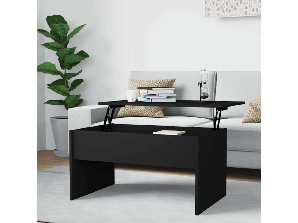 - Design se zvedací deskou: Stolní deska tohoto stolku k pohovce se dá hladce zvednout do pohodlné výšky, a tím jej přeměnit na místo, kde můžete pracovat nebo stolovat.