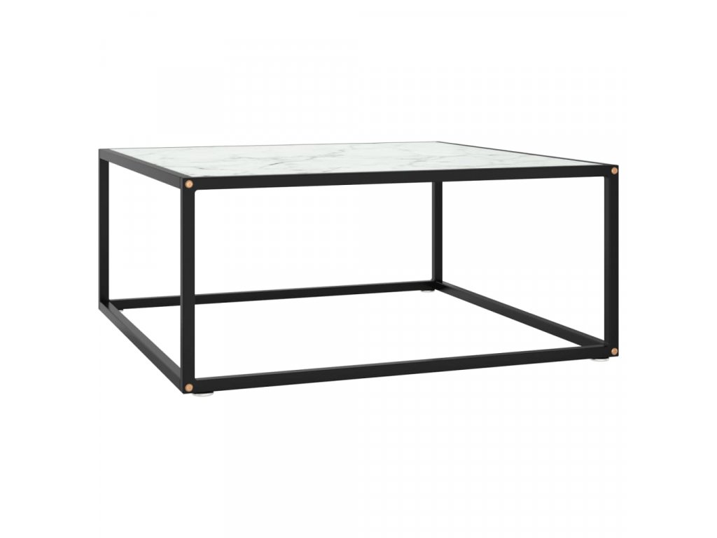 Konferenční stolek černý s bílým mramorovým sklem 80x80x35 cm 322877