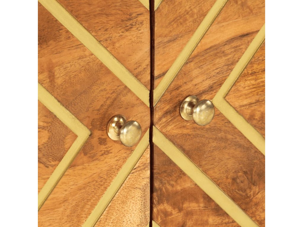 - Materiál: masivní mangovníkové dřevo s akáciově hnědou povrchovou úpravou, MDF, železo