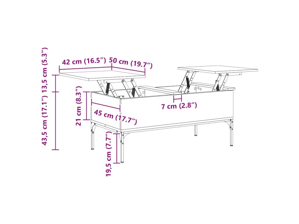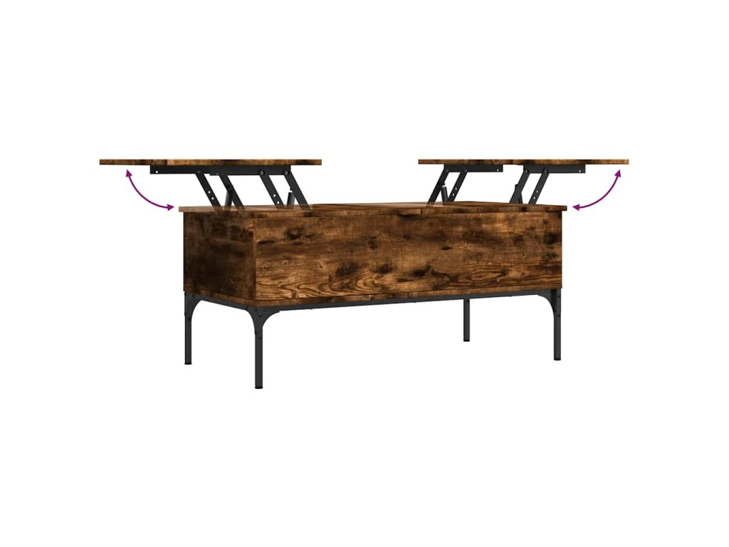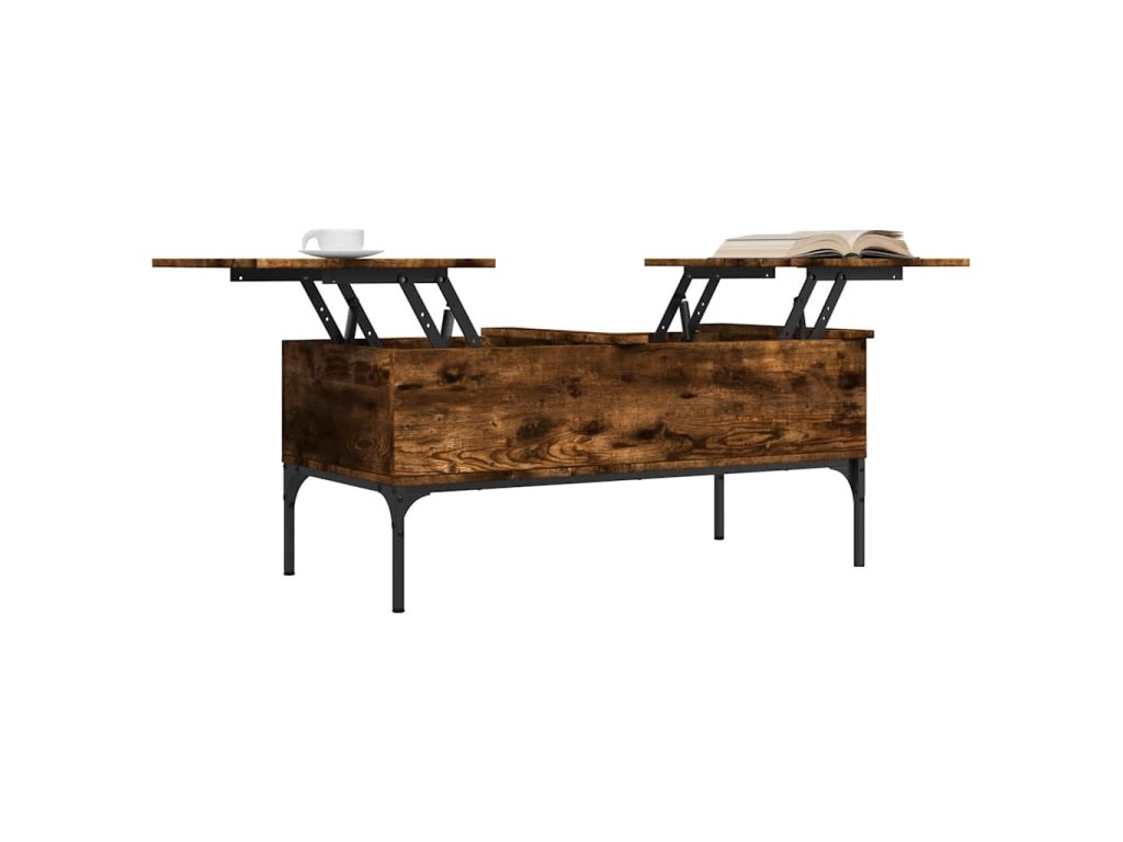 - Design se zvedací deskou: Stolní deska tohoto stolku k pohovce se dá hladce zvednout do pohodlné výšky, a tím jej přeměnit na místo, kde můžete pracovat nebo stolovat.