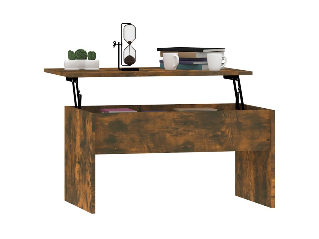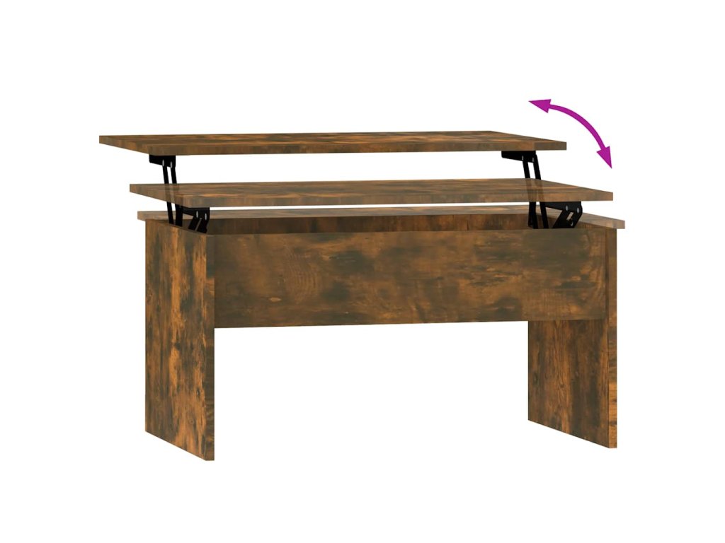 - Design se zvedací deskou: Stolní deska tohoto stolku k pohovce se dá hladce zvednout do pohodlné výšky, a tím jej přeměnit na místo, kde můžete pracovat nebo stolovat.