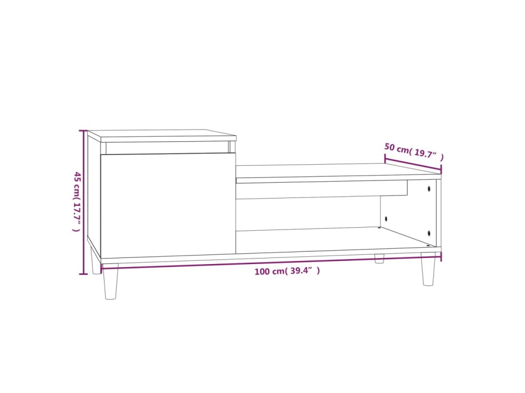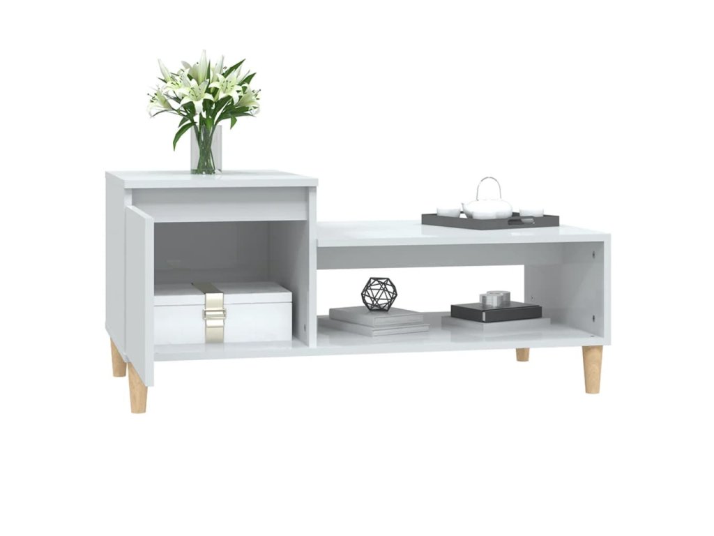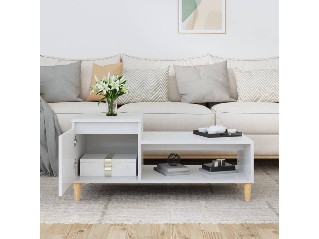 Konferenční stolek lesklý bílý 100x50x45 cm kompozitní dřevo 821126