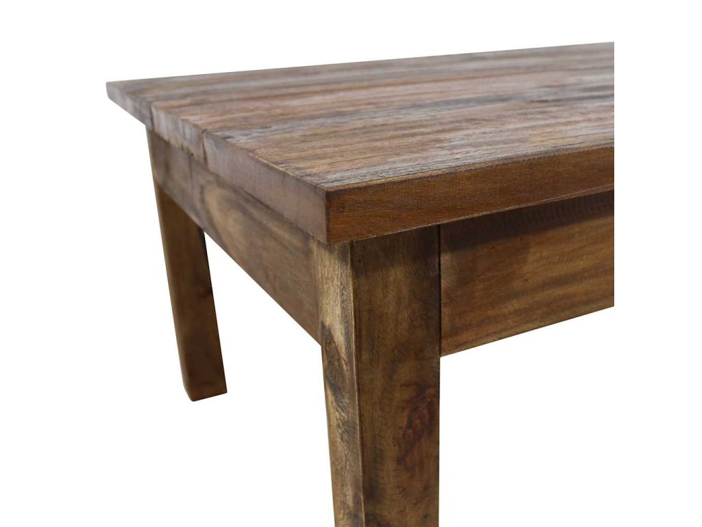 Tento konferenční stolek z masivního mahagonového dřeva je mimořádně odolný a robustní. Mahagon je tropické tvrdé dřevo, které vyniká svou krásou, odolností a barvou. Speciální řemeslné zpracování dodává tomuto výrobku vintage, hřejivý a autentický vzhled. Každý kus nábytku je unikátní a lehce odlišný od všech ostatních. Známky opotřebení dodávají každému kusu jedinečný vzhled a propůjčují mu působivý vintage styl. Jelikož je stolek zhotovený z recyklovaného dřeva, může vykazovat drobné vady, které ale jen odrážejí jeho bohatou historii a autentičnost. Použité dřevo pochází z přirozeně padlých stromů, starých lodí, dřevěných domů apod.
