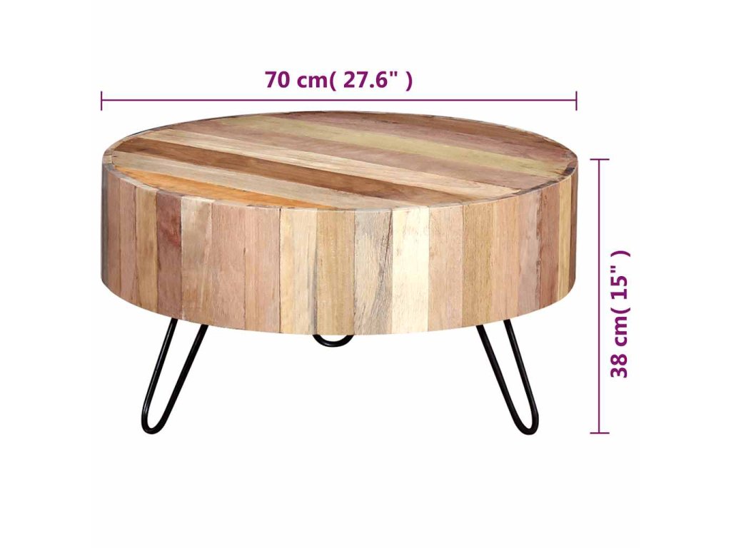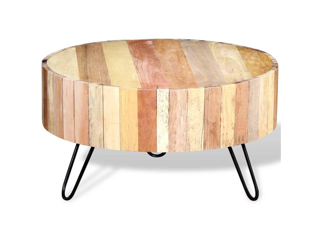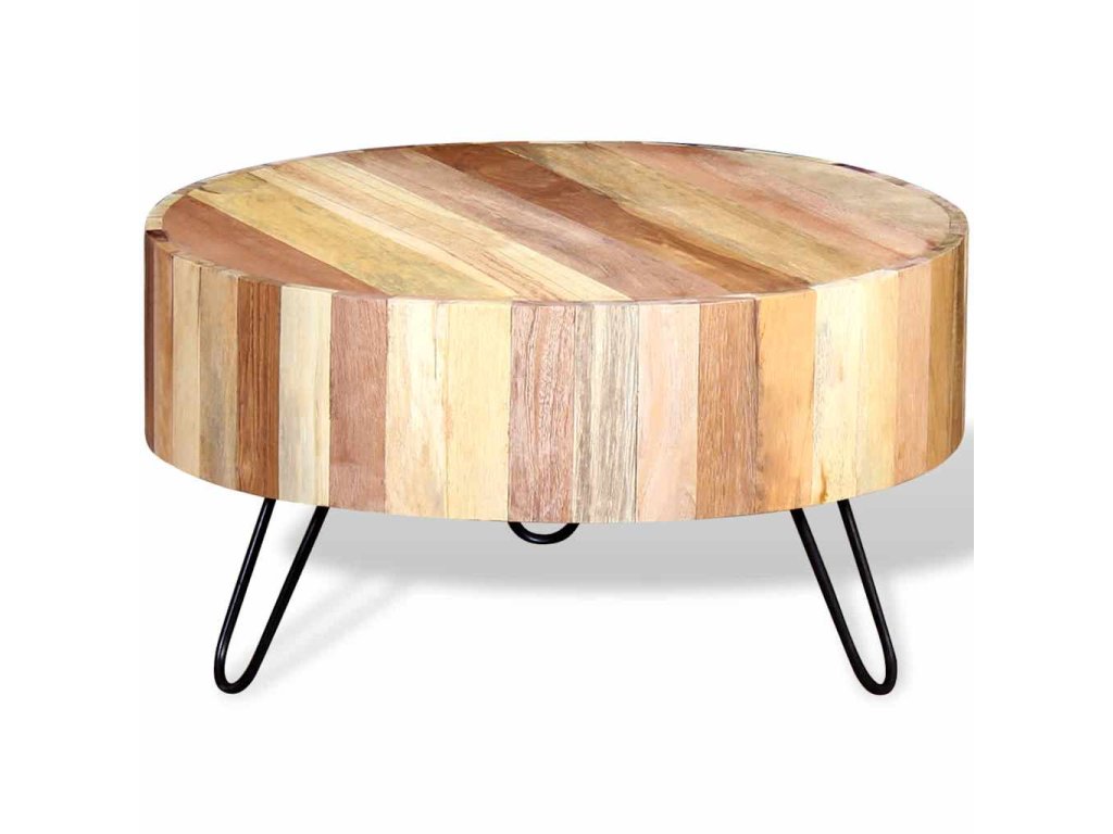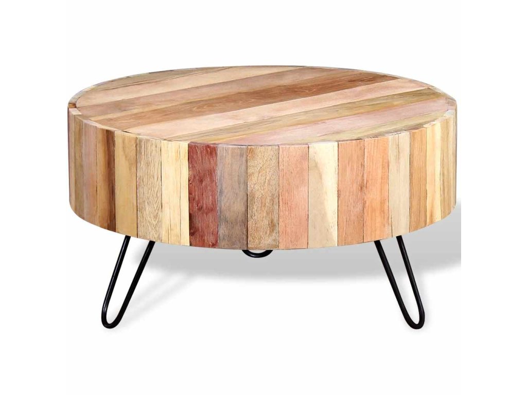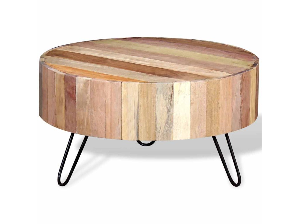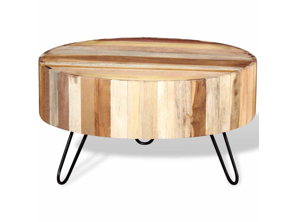 Konferenční stolek je vyrobený ručně z masivního recyklovaného dřeva, které je bytelné, odolné a krásné a má vlastnosti různých dřevin jako je teak, mangovník, akácie, recyklované dřevo, tvrdé dřevo atd. Každý krok výroby je prováděný s největší péčí, ať už jde o leštění, nebo lakování, a řemeslné zpracování dodává stolku působivý retro styl. Díky krásné struktuře dřeva je každý kus nábytku unikátní a mírně se liší od všech dalších. Rámy jsou vyrobeny z odolného železa, které zvyšuje robustnost stolků.