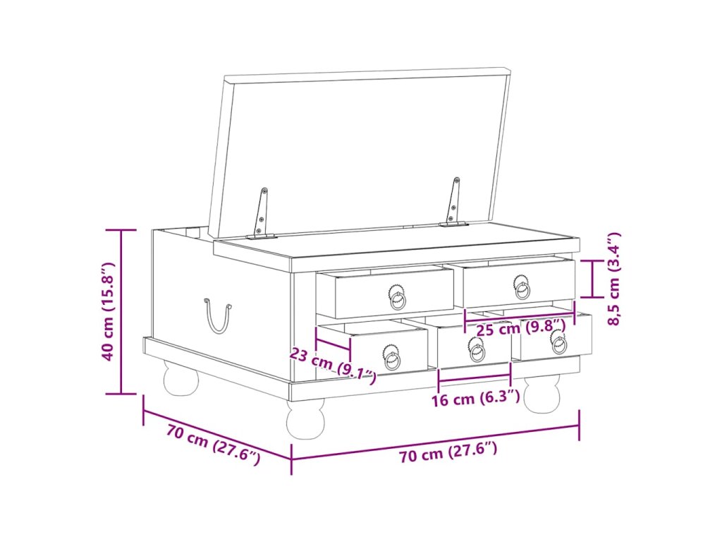 - Rozměry: 70 x 70 x 38 cm (D x Š x V)