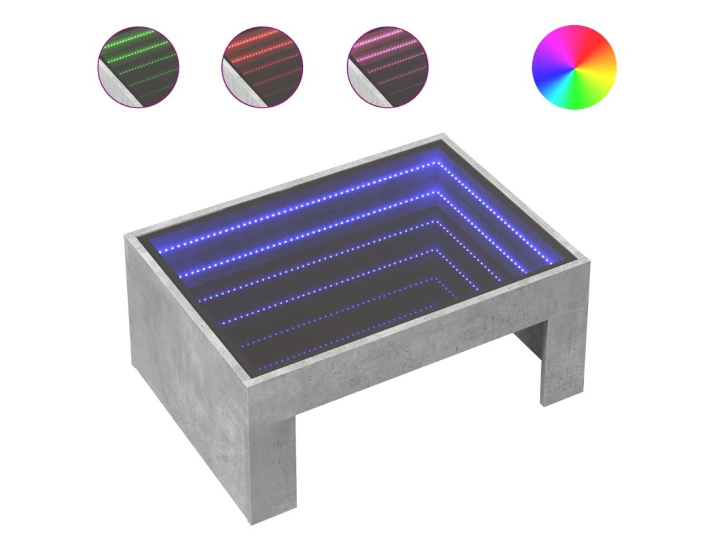 Konferenční stolek s Infinity LED betonově šedý 70 x 50 x 30 cm 847612