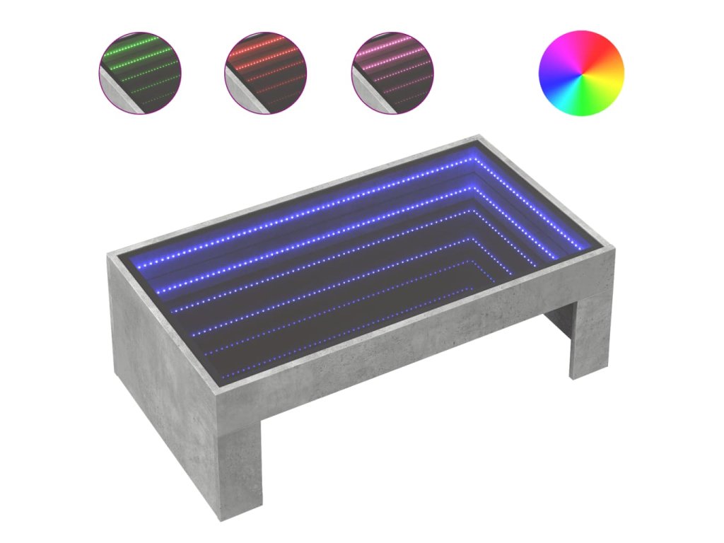 Konferenční stolek s Infinity LED betonově šedý 90 x 50 x 30 cm 847619